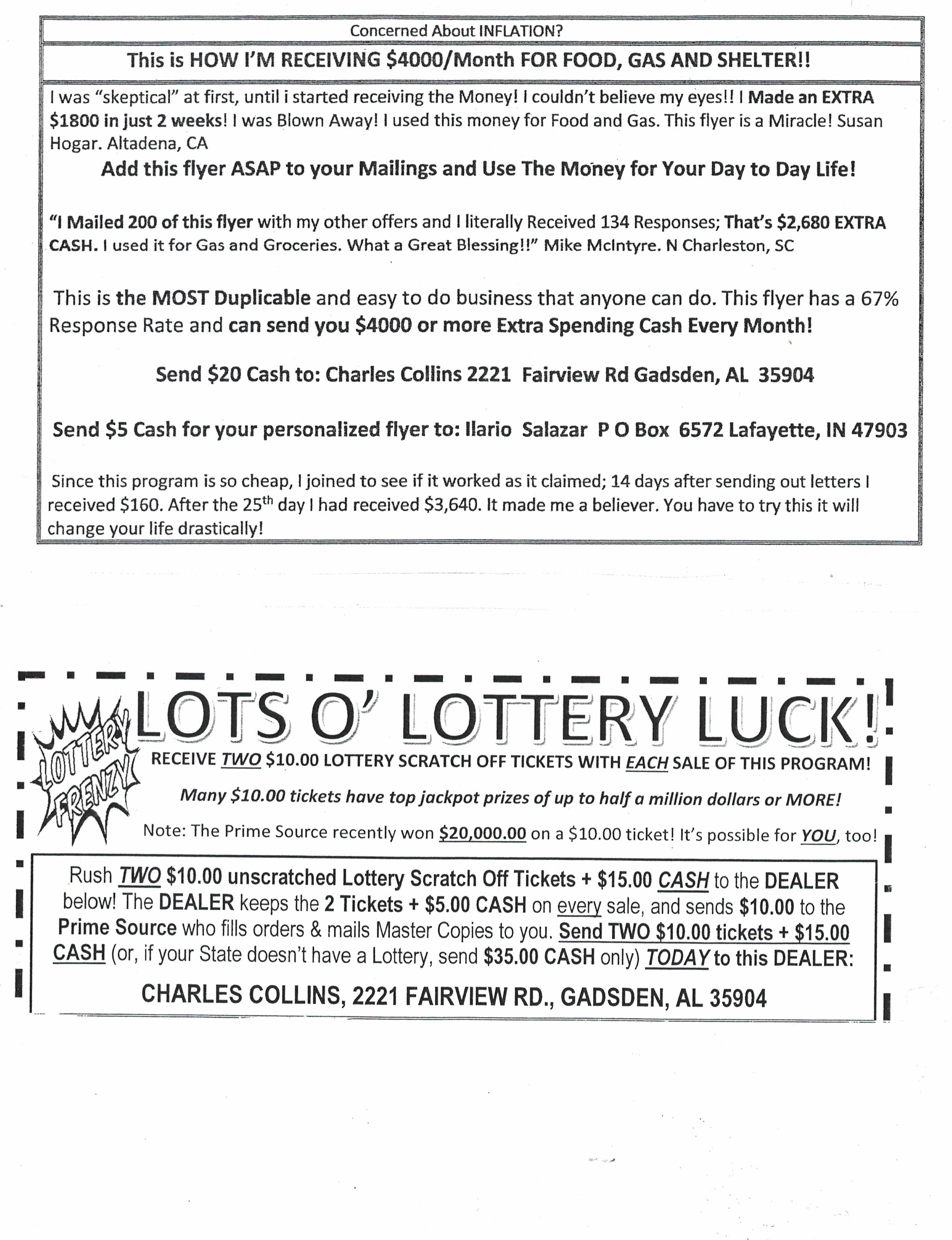 How to win with lottery scratch games! + bonus report! 50 ways to money! ($20.00 value!) Send 5 $1.00 unscratched lottery tickets + 7 F/C stamps or $15 cash. Janice Hegger, PO Box 683, Cottonport LA 71327