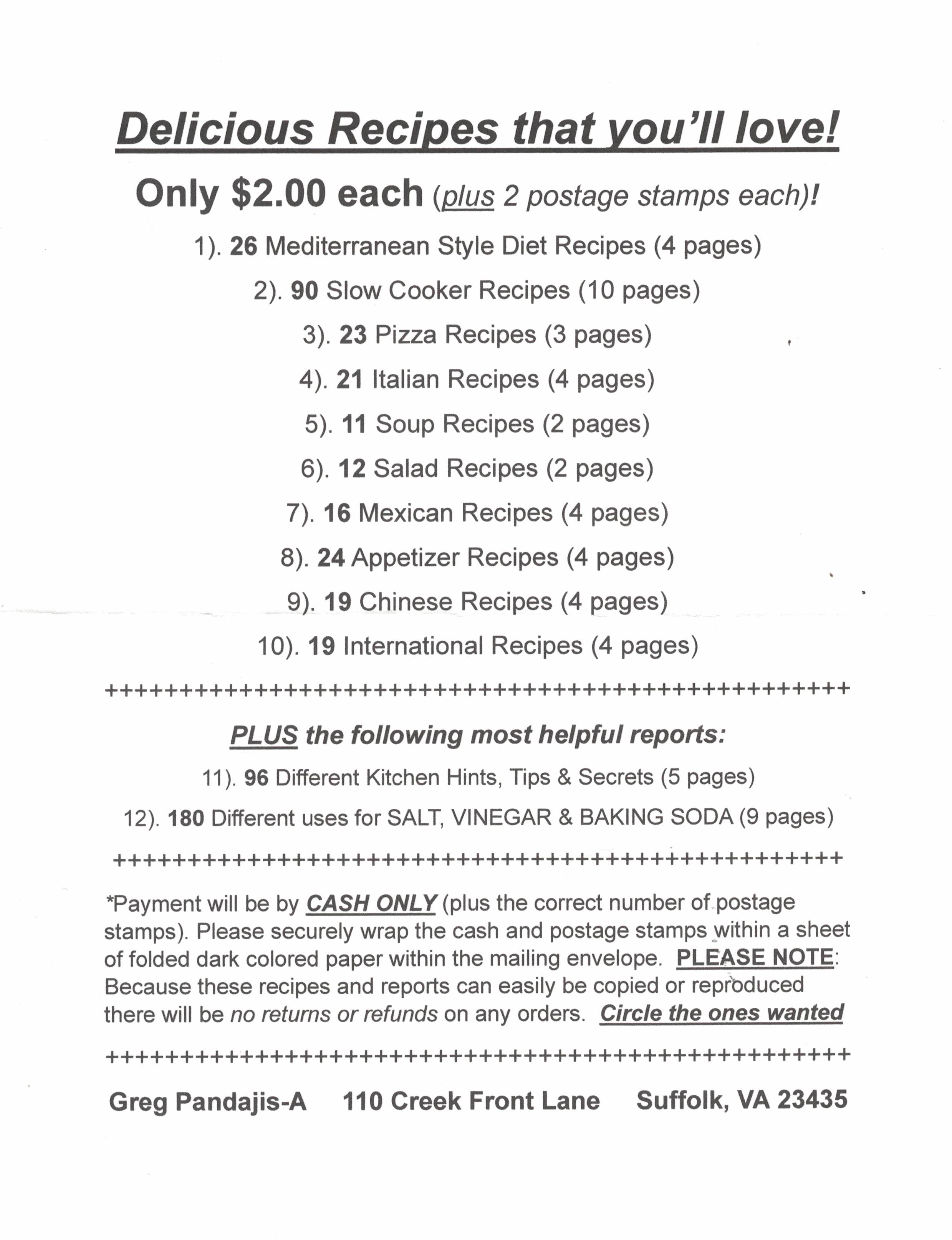 | Double-sided 8 X 11 circular or ad sheet .................................................... $5 for 6 months |