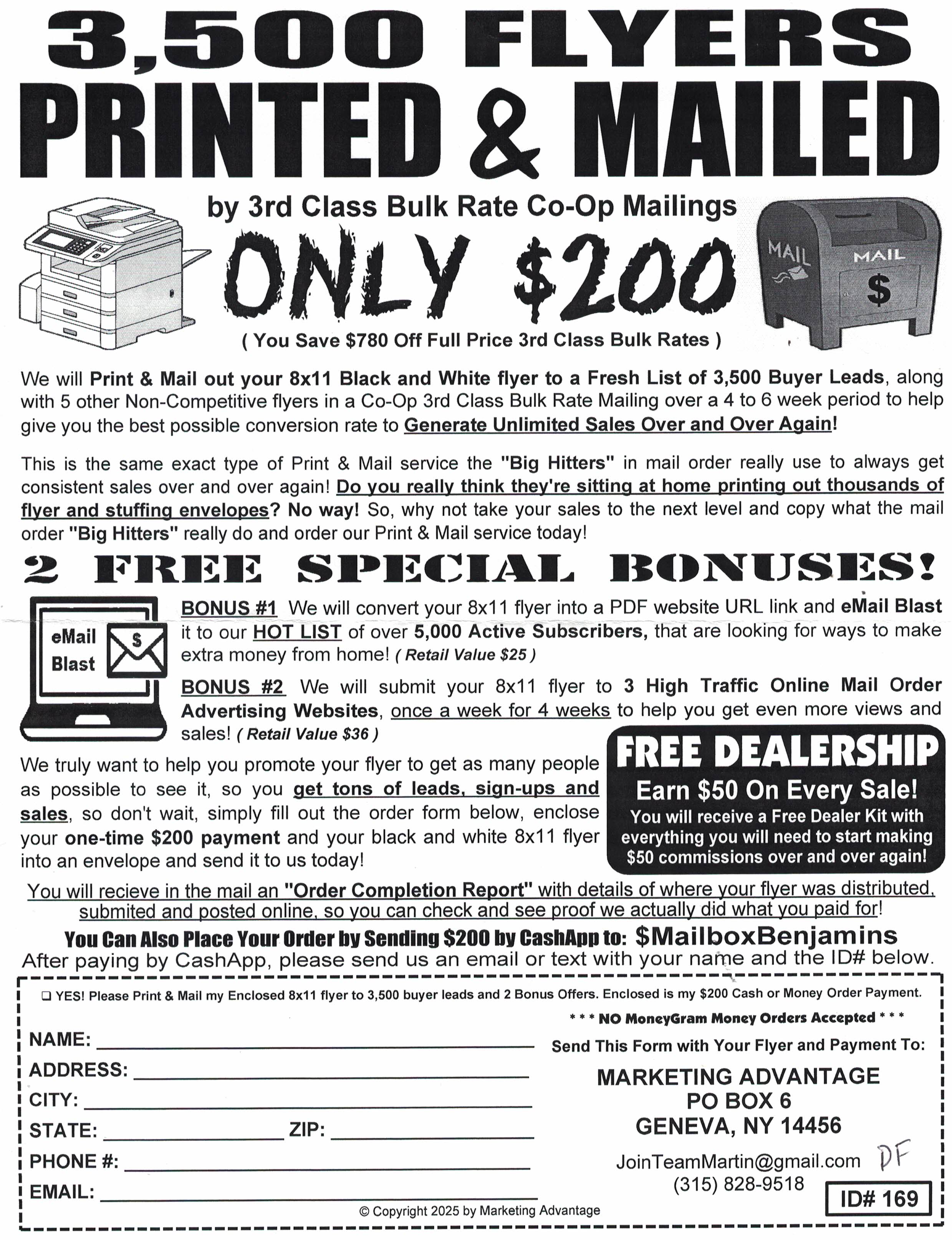 ![]() The Ad Blaster. 6500+ guaranteed circulation. Published in Shore To Shore, Liberty Press, JBR Home Mailer and online at www.MailOrderDaily.com. $7 per camera-ready inch. Publisher: Darin Forey, PO Box 530008, St. Pete FL 33747 The Fast 100 Ad Sheet. 100 circulation by first class mail plus unlimited online circulation at www.adsheets.net. $1 per camera-ready inch. Darin Forey, PO Box 530008, St. Pete FL 33747 Your listing here. Click for details ![]() Your listing here. Click for details ![]() 180 hot names on paper $8 or peel and stick labels $15. Darin Forey, PO Box 530008, Saint Pete FL 33747 Your listing here. Click for details | ![]() Your 8x11 circular or ad sheet (B&W) printed and mailed to 100 circulation. single-sided $12, double-sided $22. Darin Forey, PO Box 530008, St. Pete FL 33747 Your listing here. Click for details ![]() Your listing here. Click for details ![]() Your listing here. Click for details | ![]() Your 60 words or less typeset in to a 2" camera ready ad. You receive 9 copies of your new ad. $3 + 1 F/C stamp. Darin Forey, PO Box 530008, St. Pete FL 33747 Your 90 words or less typeset in to a 3" camera ready ad. You receive 9 copies of your new ad. $4 + 1 F/C stamp. Darin Forey, PO Box 530008, St. Pete FL 33747 Your 30 words or less typeset in to a 1" camera ready ad. You receive 9 copies of your new ad. $2 + 1 F/C stamp. Darin Forey, PO Box 530008, St. Pete FL 33747 Your listing here. Click for details ![]() Your listing here. Click for details |