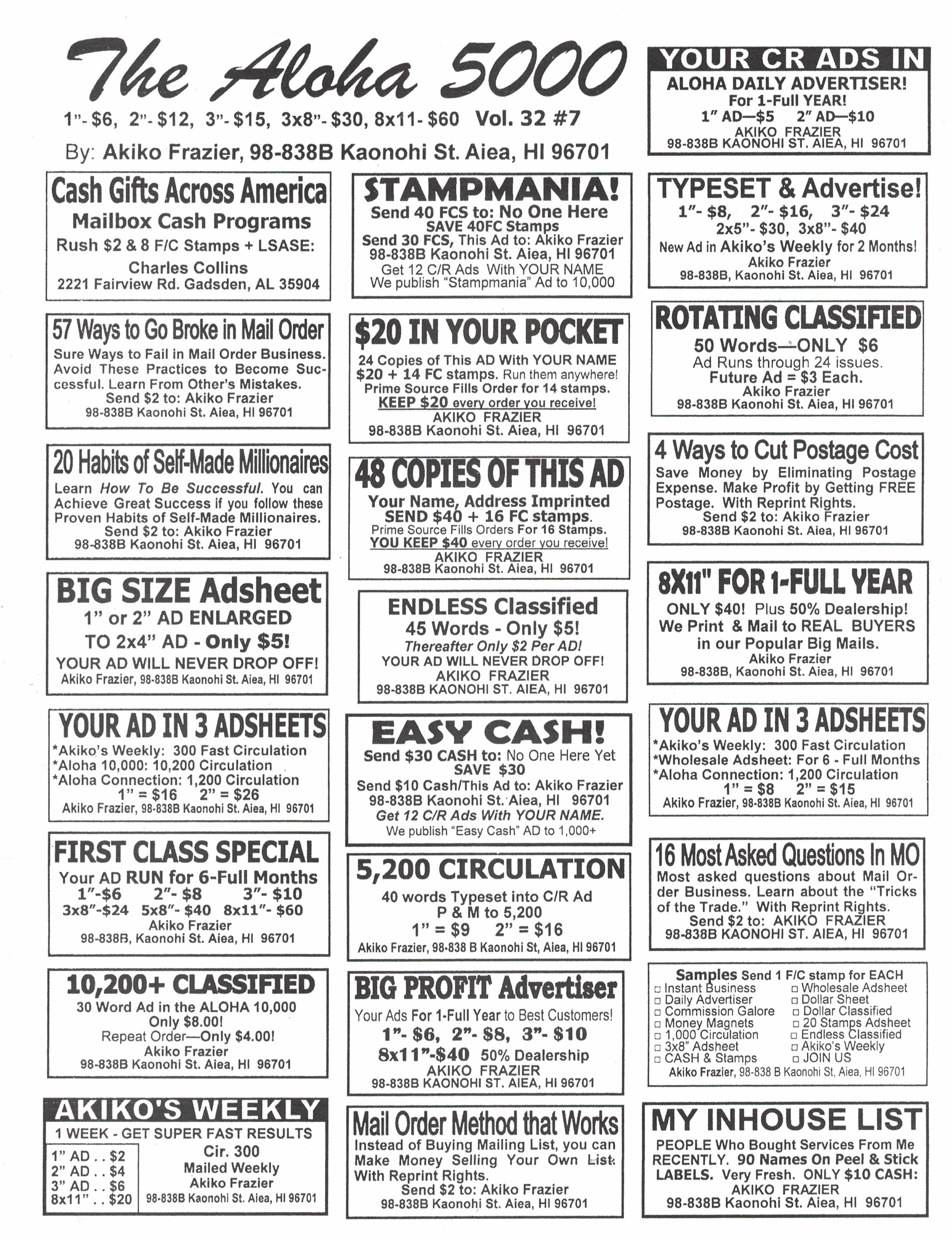 Why wait weeks or months to have your ads in circulation? Your 1" to 3" ads in 50 different ad sheets. 1,000,000 circulation only $60.00 + 6 F/C stamps to: Richard Lanier, 306 East 171 Street Apt. 2-F, Bronx NY 10457. Send cash or money order only.