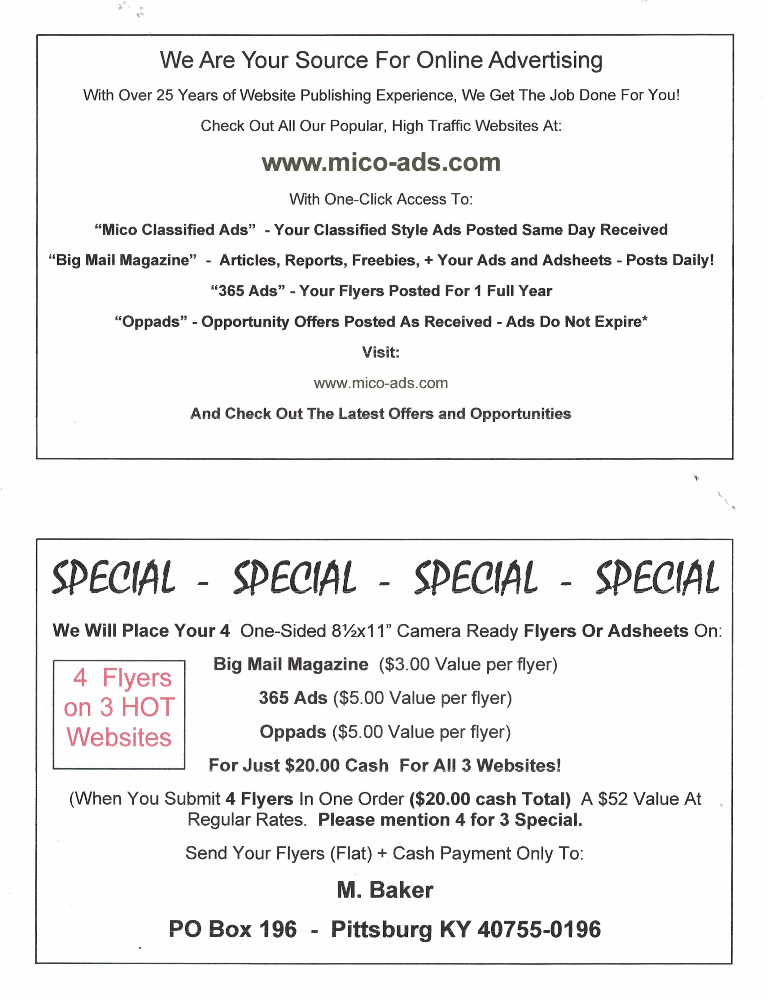 WANT TO RECEIVE OFFERS, PROGRAMS, OPPORTUNTIES, AD SHEETS AND PUBLICATIONS BY FIRST CLASS MAIL? JOIN MY MAILING LIST TODAY !!