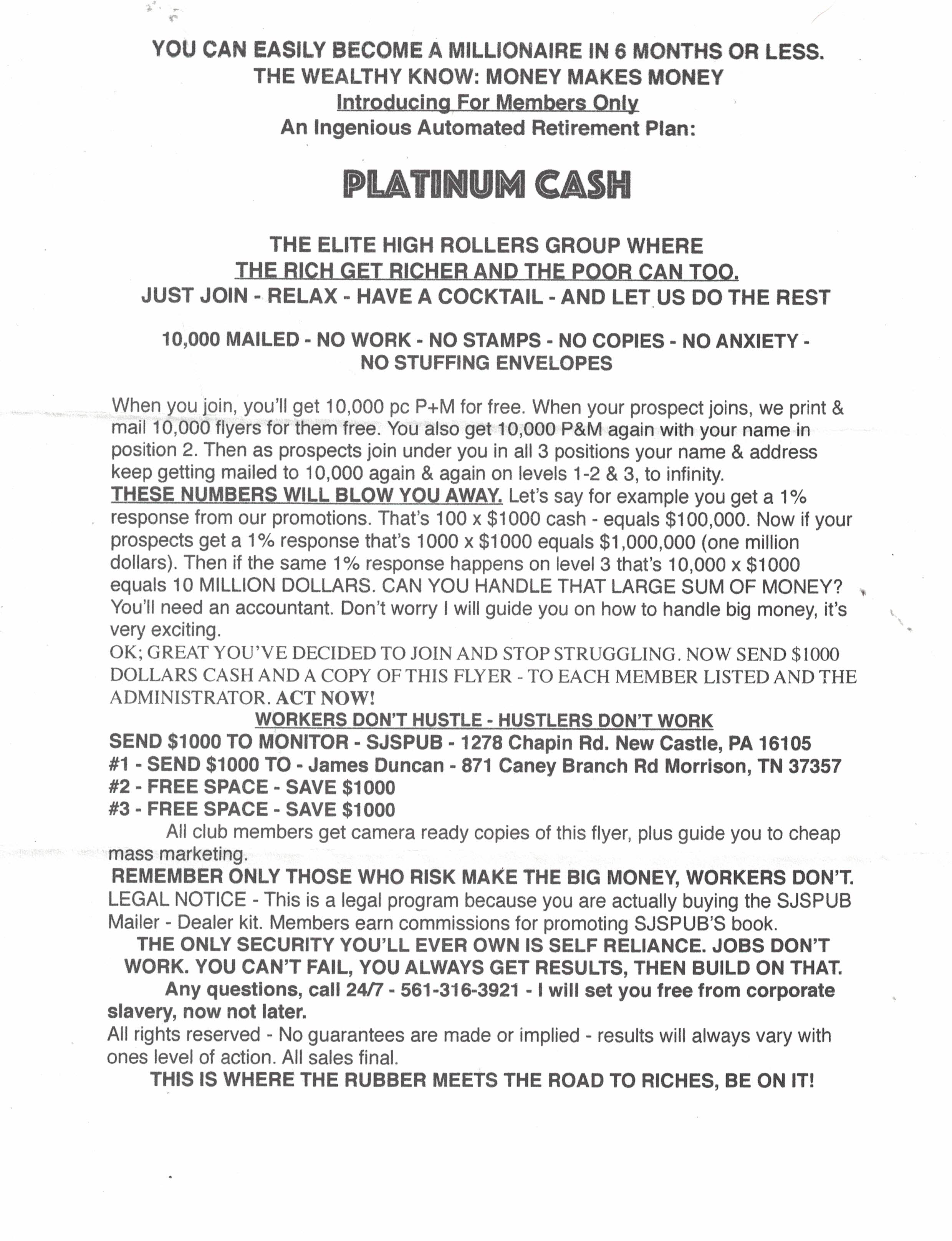Your 8x11 circular or ad sheet (B&W) printed and mailed to 100 circulation. single-sided $12, double-sided $22. Darin Forey, PO Box 530008, St. Pete FL 33747