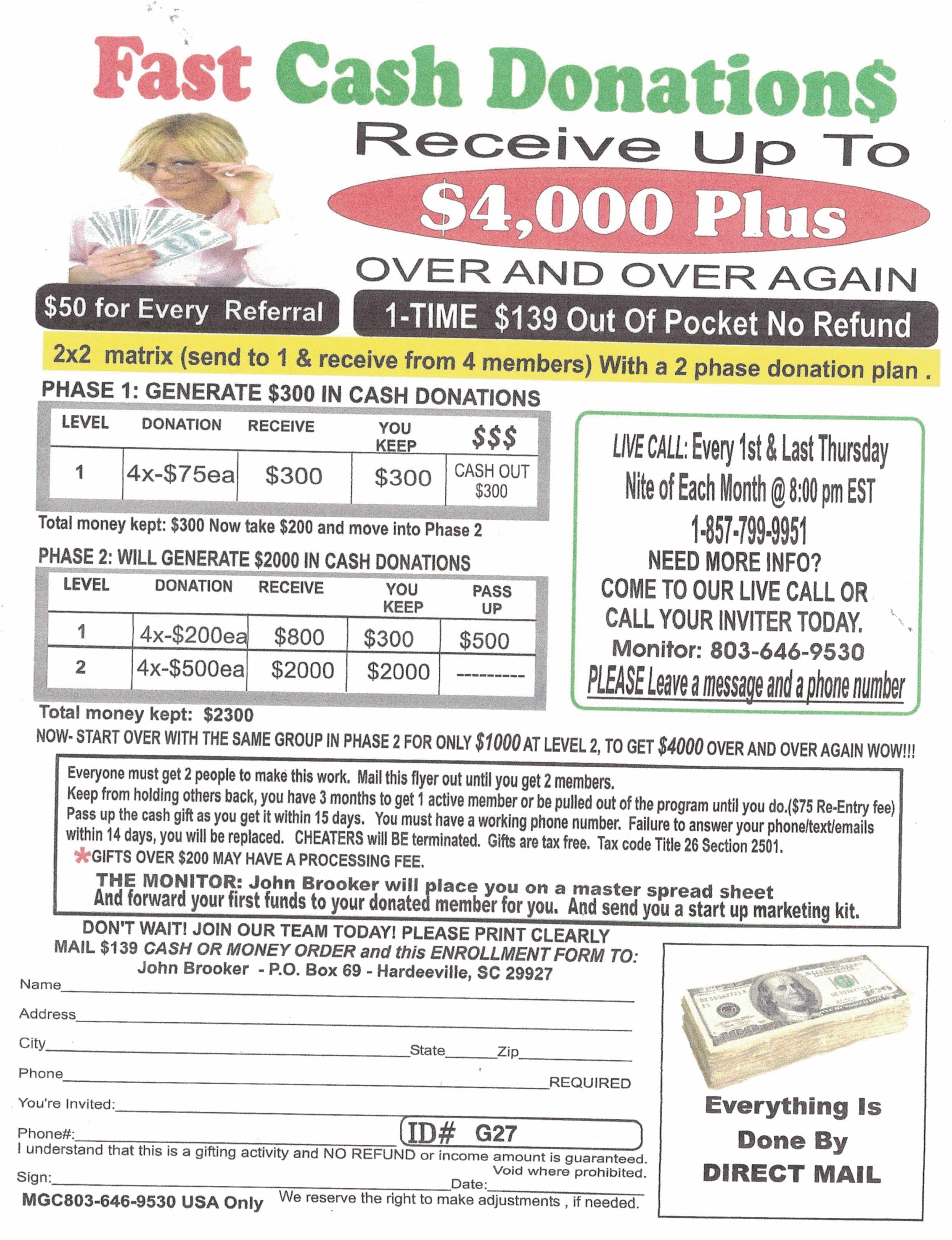 Need free money for debts, mortgage, education, business, fundraising & more? Send a LSASE to: Bruce McFayden, 670 Madison Ave, Daytona Beach FL 32114