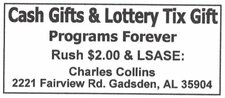 Need stamps! Send $5.00 cash + LSASE for 5 different ways to get free stamps. Sue Holifield, 111 Holt Ave., Birmingham AL 35214