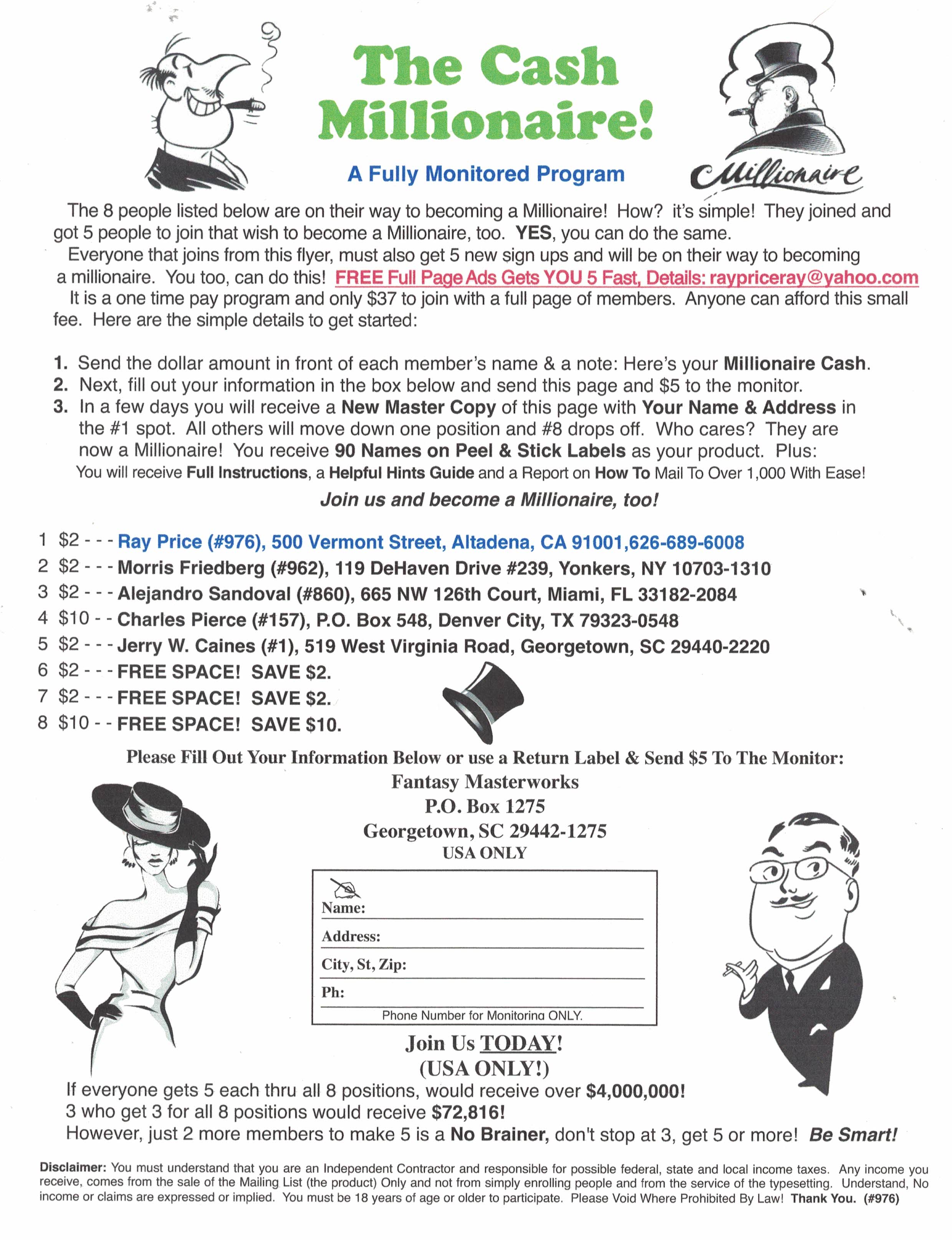 Need free money for debts, mortgage, education, business, fundraising & more? Send a LSASE to: Bruce McFayden, 670 Madison Ave, Daytona Beach FL 32114