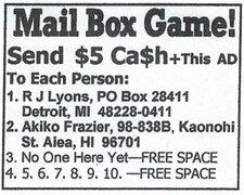 ![]() The Ad Blaster. 6500+ guaranteed circulation. Published in Shore To Shore, Liberty Press, JBR Home Mailer and online at www.MailOrderDaily.com. $7 per camera-ready inch. Publisher: Darin Forey, PO Box 530008, St. Pete FL 33747 The Fast 100 Ad Sheet. 100 circulation by first class mail plus unlimited online circulation at www.adsheets.net. $1 per camera-ready inch. Darin Forey, PO Box 530008, St. Pete FL 33747 Your listing here. Click for details ![]() Your listing here. Click for details ![]() 180 hot names on paper $8 or peel and stick labels $15. Darin Forey, PO Box 530008, Saint Pete FL 33747 Your listing here. Click for details | ![]() Your 8x11 circular or ad sheet (B&W) printed and mailed to 100 circulation. single-sided $12, double-sided $22. Darin Forey, PO Box 530008, St. Pete FL 33747 Your listing here. Click for details ![]() Your listing here. Click for details ![]() Your listing here. Click for details | ![]() Your 90 words or less typeset in to a 3" camera ready ad. You receive 9 copies of your new ad. $4 + 1 F/C stamp. Darin Forey, PO Box 530008, St. Pete FL 33747 Your 30 words or less typeset in to a 1" camera ready ad. You receive 9 copies of your new ad. $2 + 1 F/C stamp. Darin Forey, PO Box 530008, St. Pete FL 33747 Your 60 words or less typeset in to a 2" camera ready ad. You receive 9 copies of your new ad. $3 + 1 F/C stamp. Darin Forey, PO Box 530008, St. Pete FL 33747 Your listing here. Click for details ![]() Your listing here. Click for details |