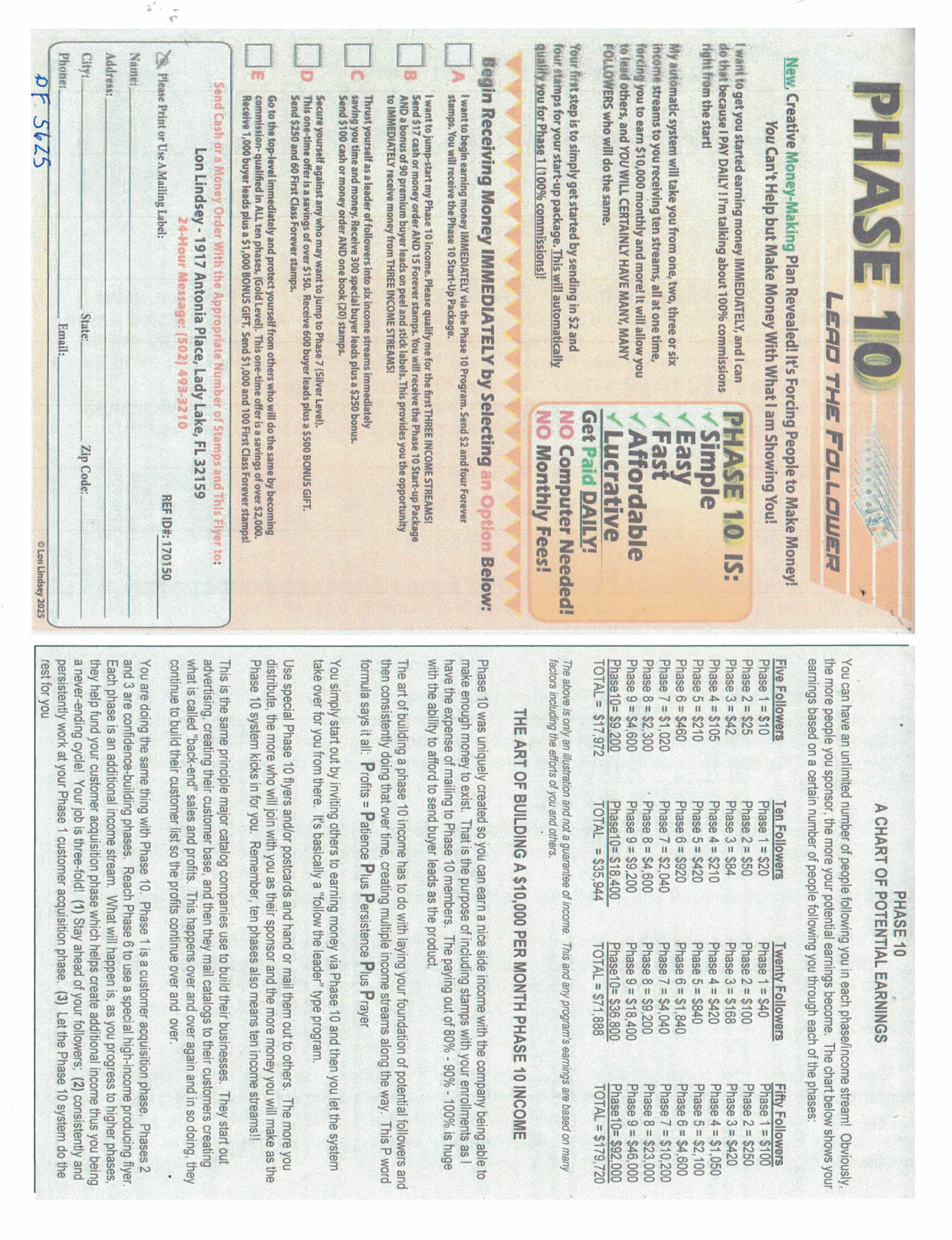 Your 8x11 circular or ad sheet (B&W) printed and mailed to 100 circulation. single-sided $12, double-sided $22. Darin Forey, PO Box 530008, St. Pete FL 33747