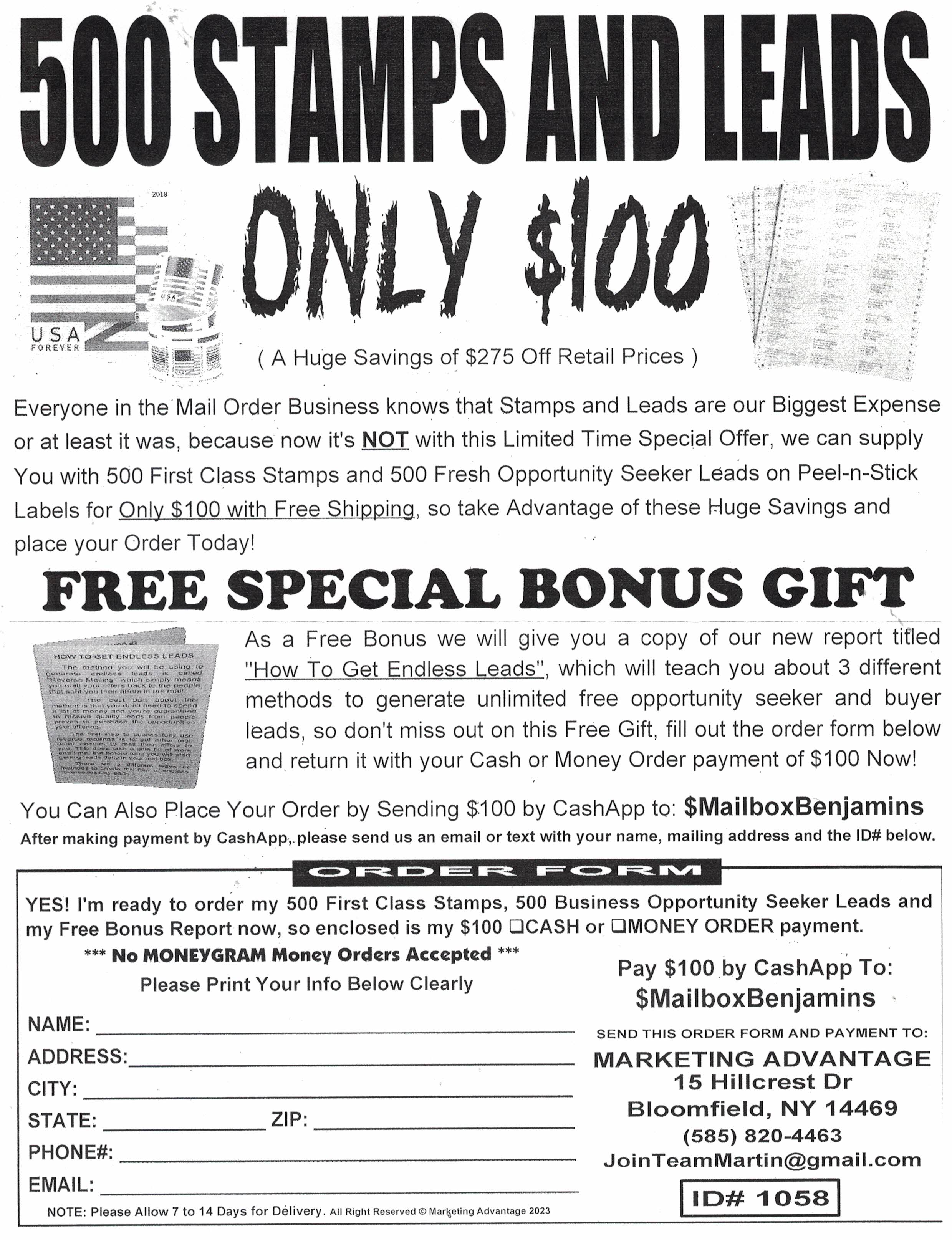 WANT TO RECEIVE OFFERS, PROGRAMS, OPPORTUNTIES, AD SHEETS AND PUBLICATIONS BY FIRST CLASS MAIL? JOIN MY MAILING LIST TODAY !!