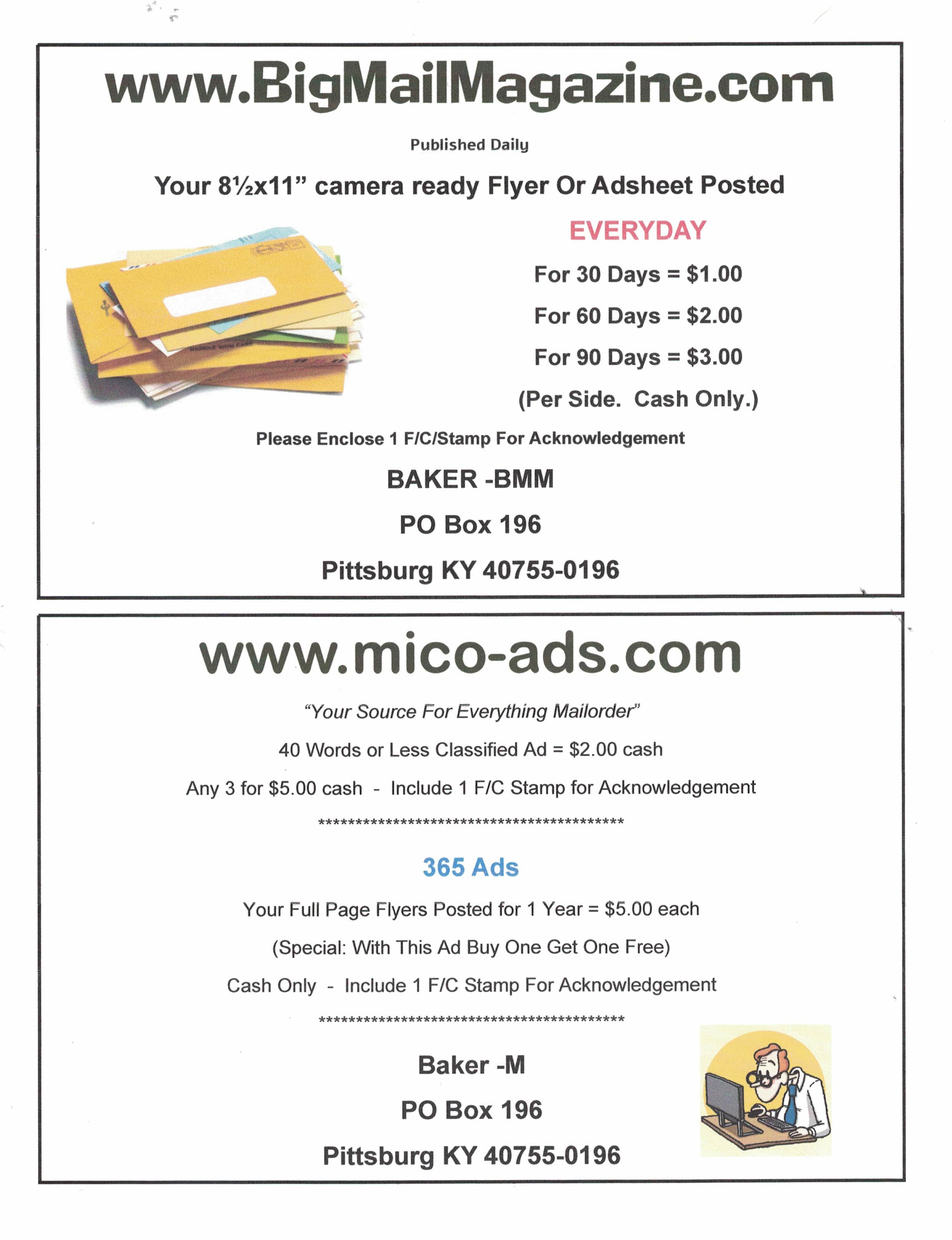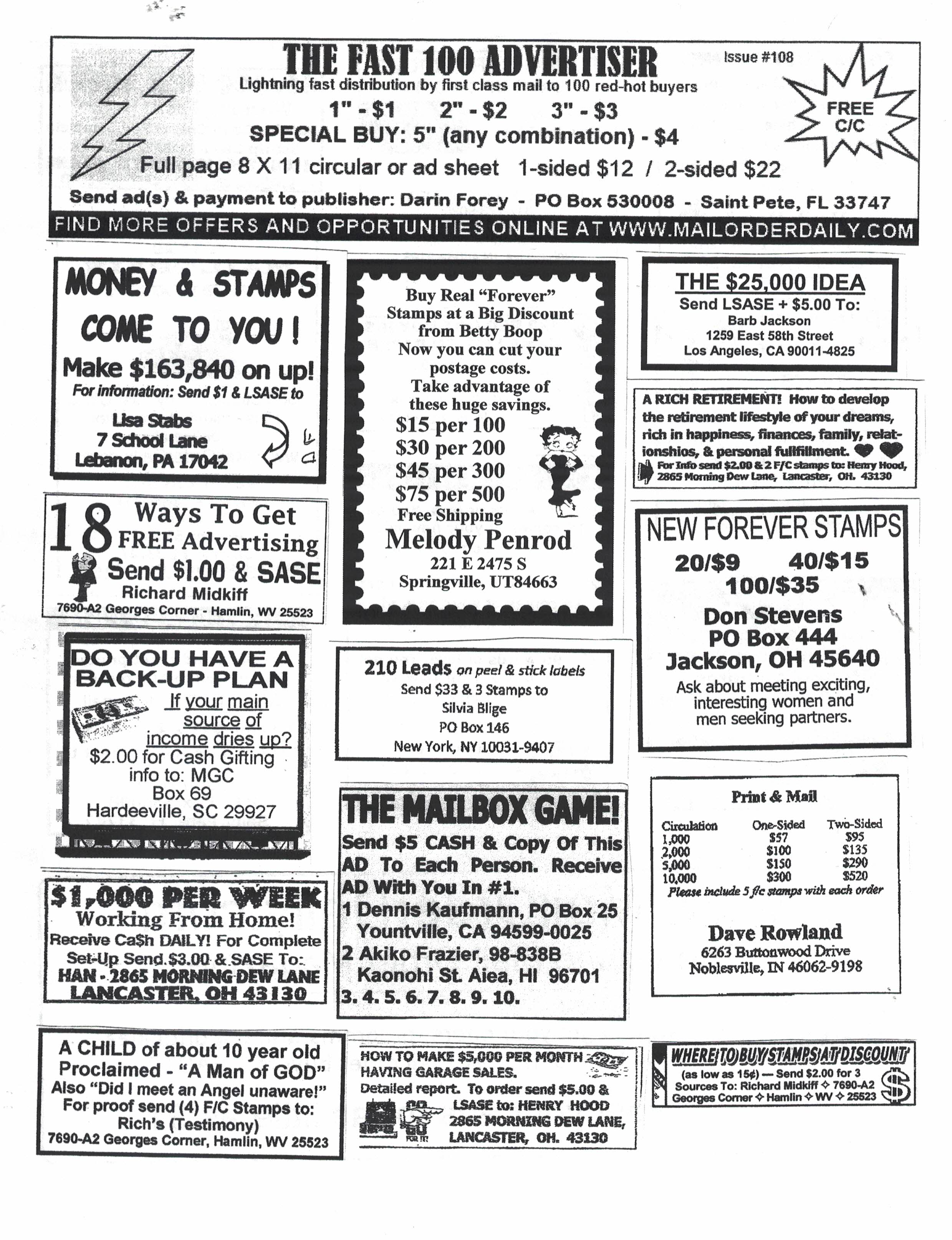 I want to advertise in your ad sheets, publications and big mails. Send rate information to: Darin Forey, PO Box 530008, St. Pete FL 33747