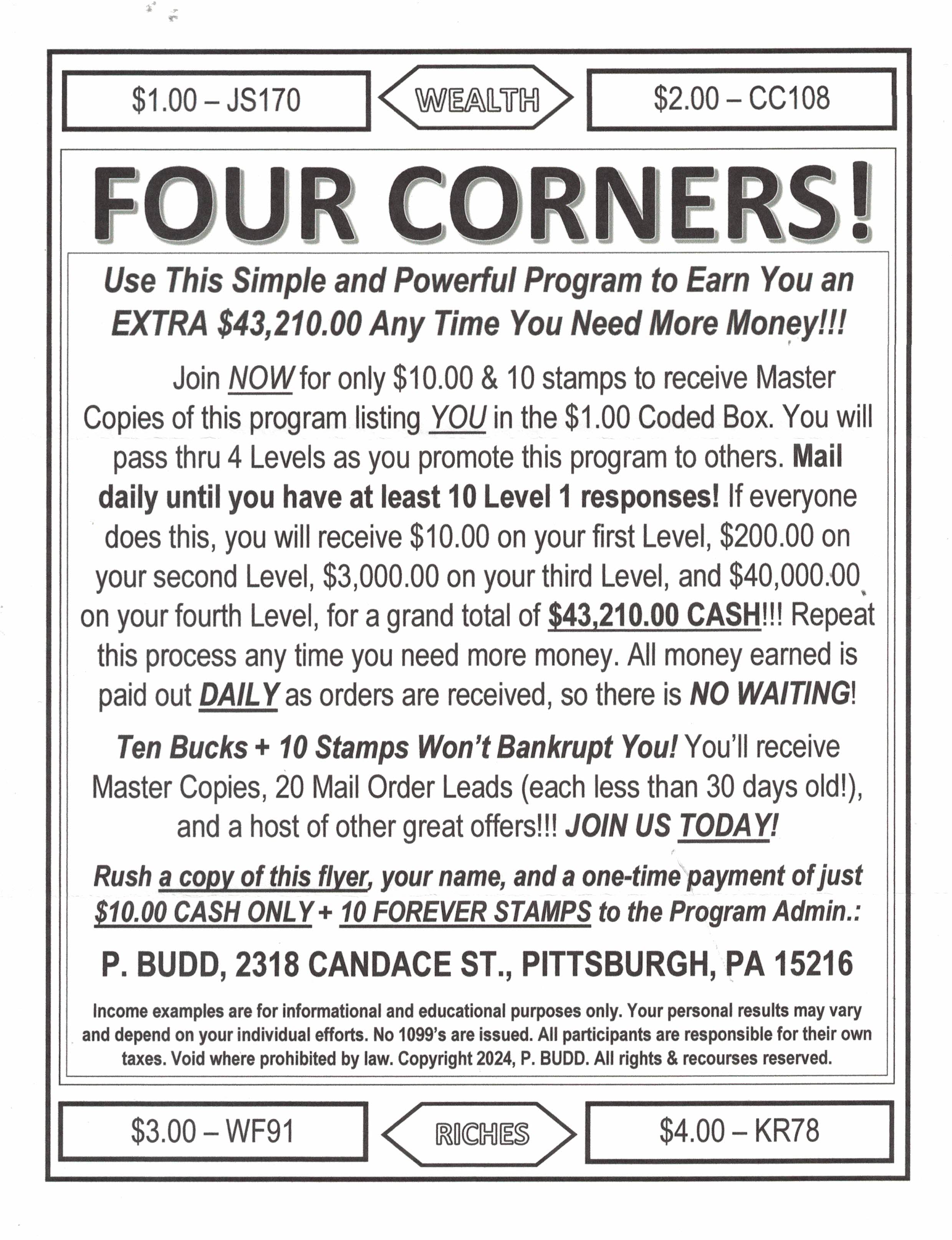 Double-sided 8 X 11 circular or ad sheet .................................................... $5 for 6 months |