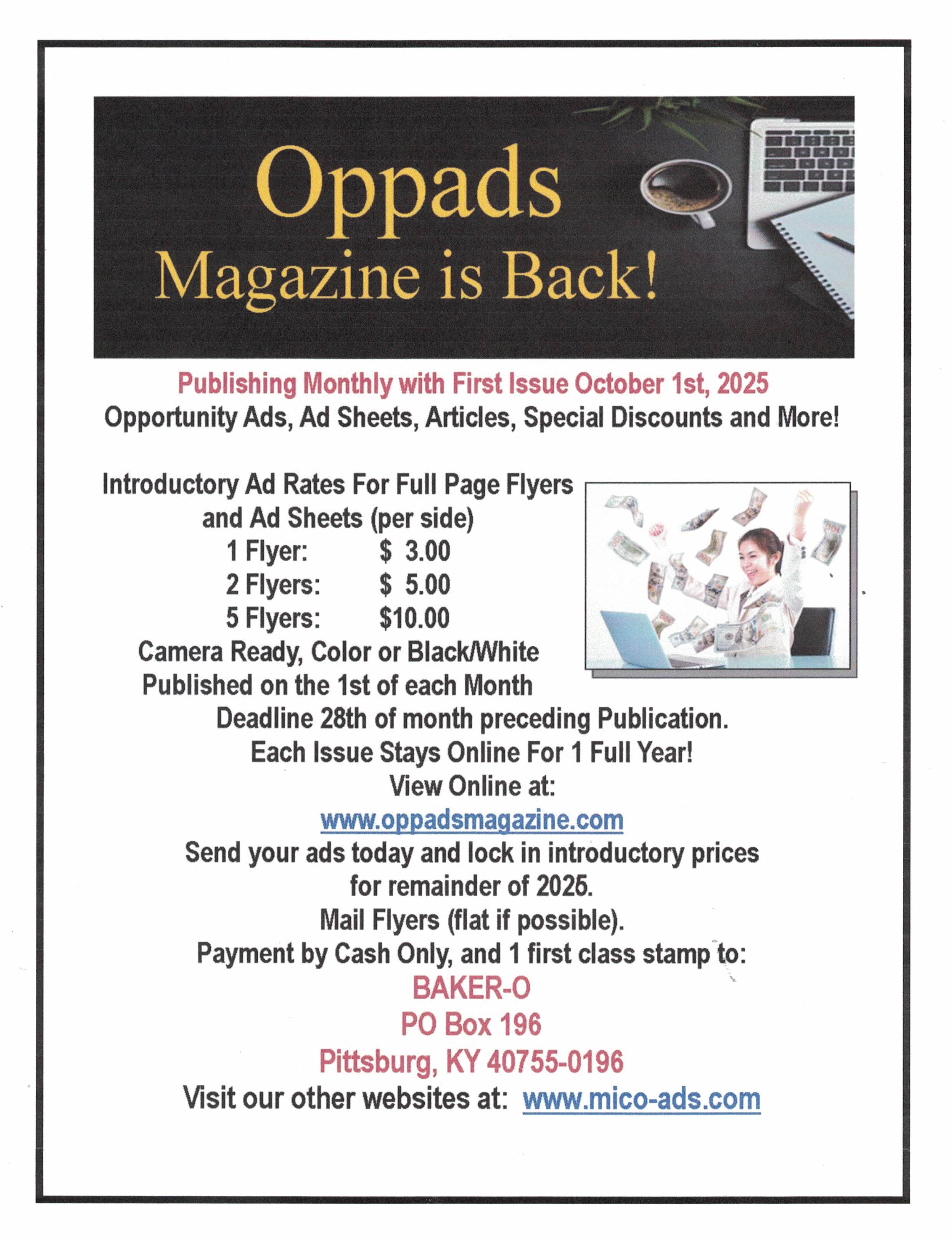 | Single-sided 8 X 11 circular or ad sheet ...................................................... $3 for 6 months |