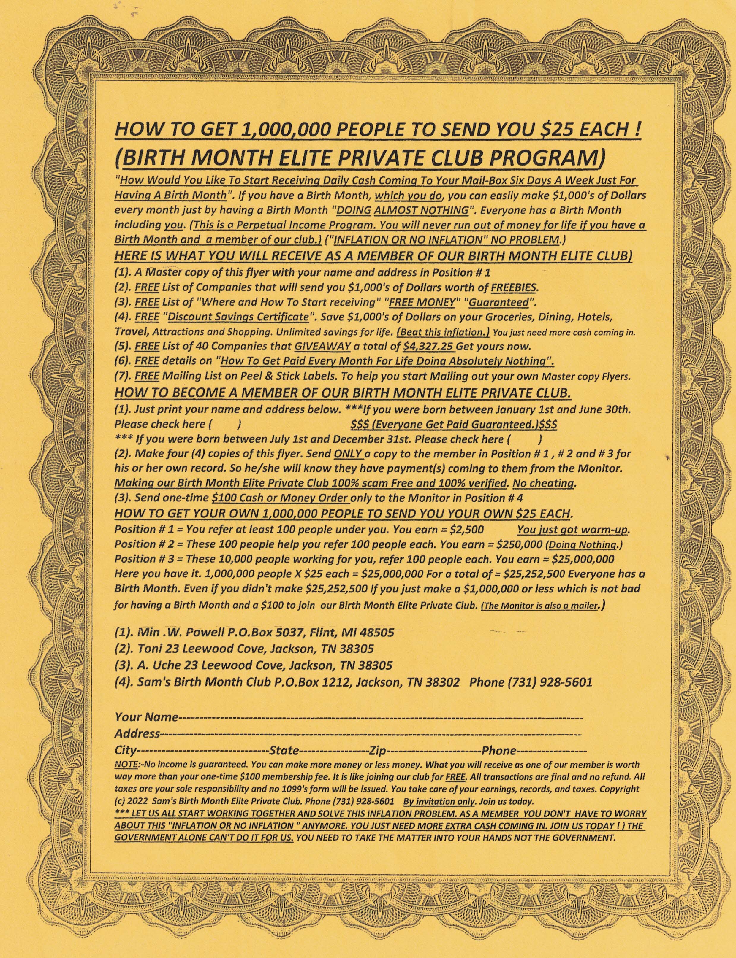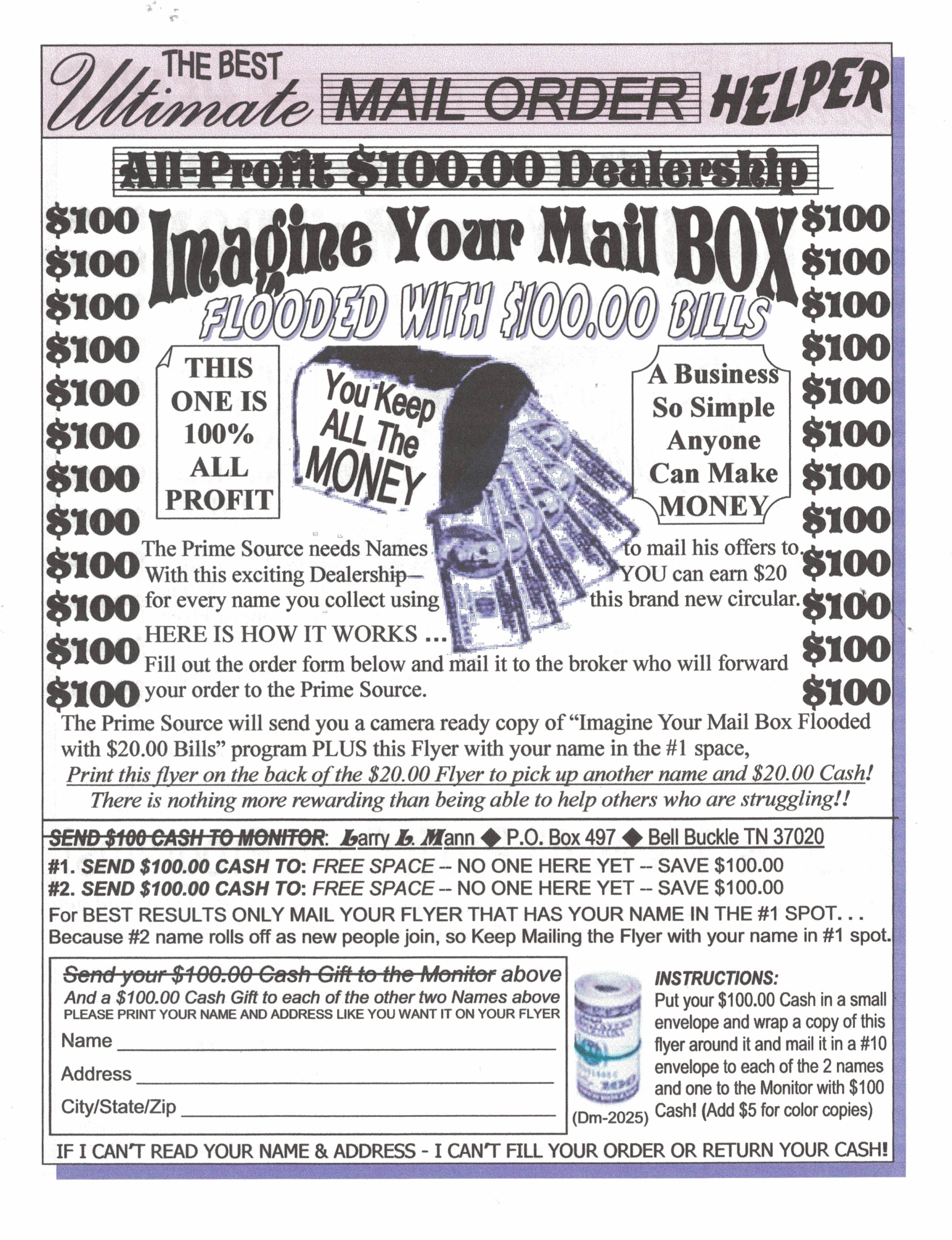 WANT TO RECEIVE OFFERS, PROGRAMS, OPPORTUNTIES, AD SHEETS AND PUBLICATIONS BY FIRST CLASS MAIL? JOIN MY MAILING LIST TODAY !!