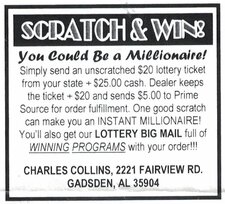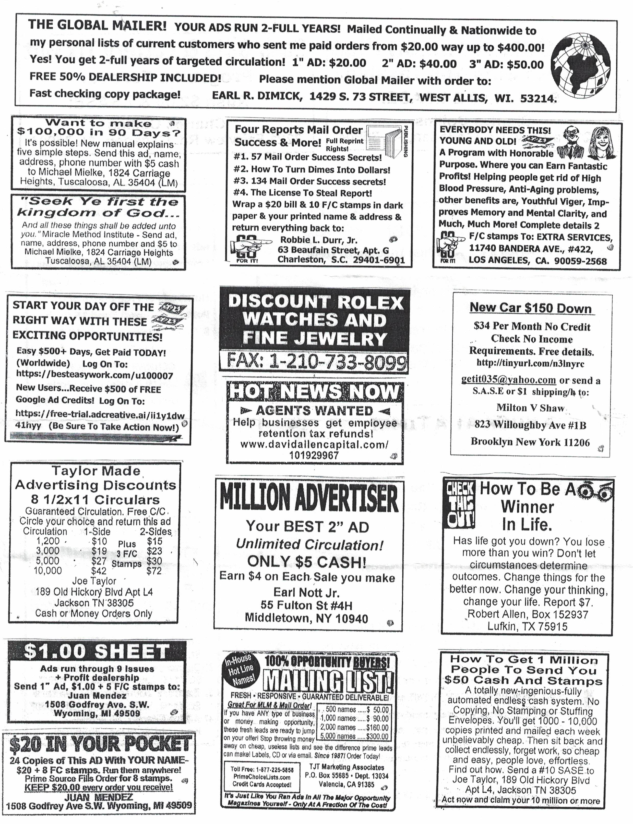 Your 60 words or less typeset in to a 2" camera ready ad. You receive 9 copies of your new ad. $3 + 1 F/C stamp. Darin Forey, PO Box 530008, St. Pete FL 33747