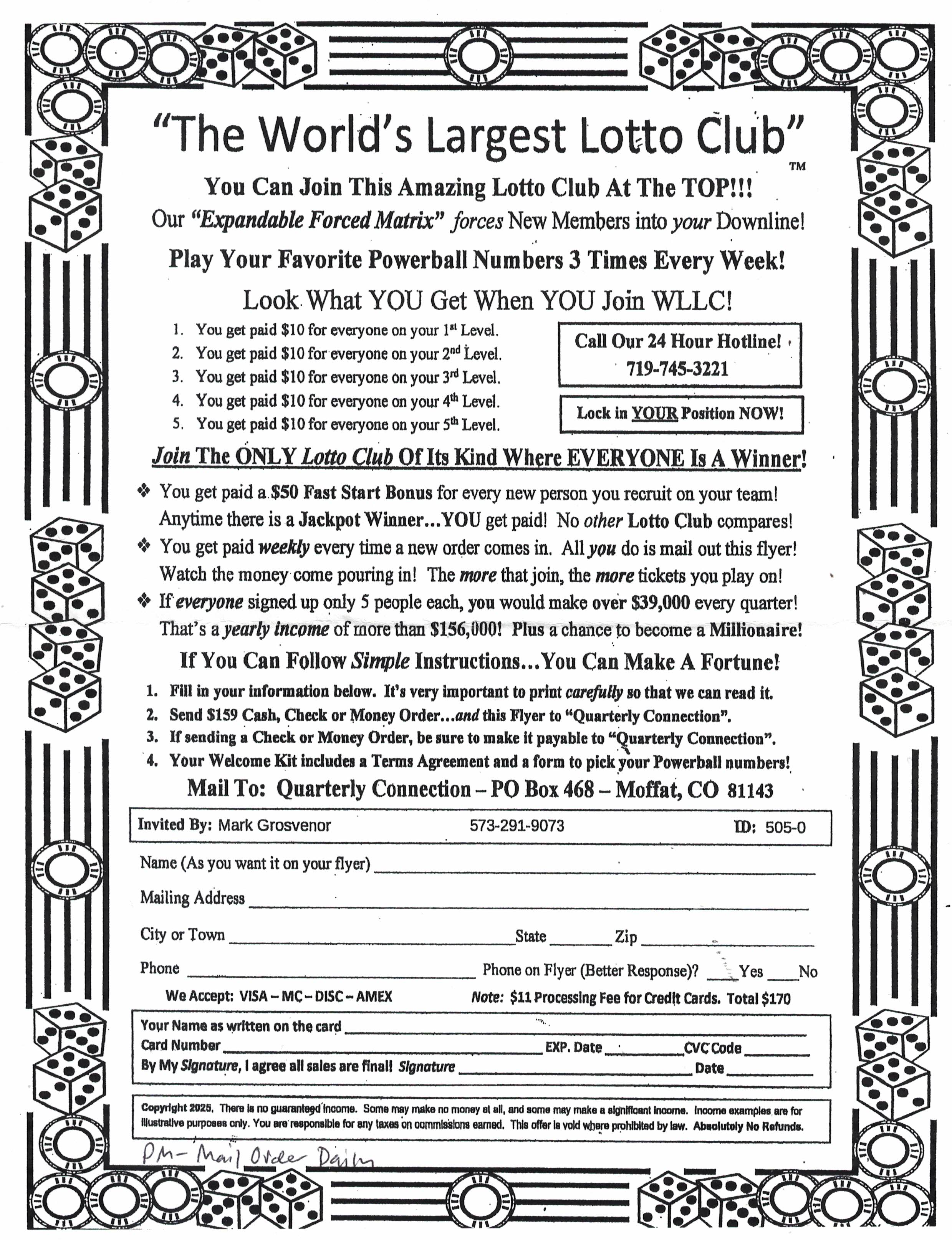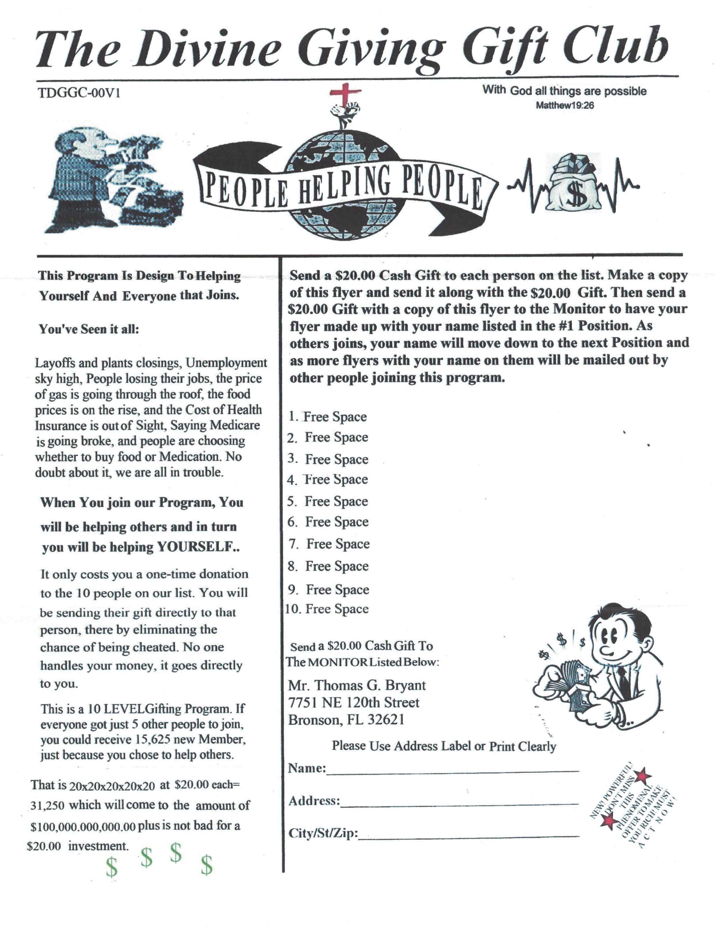 | Double-sided 8 X 11 circular or ad sheet .................................................... $5 for 6 months |