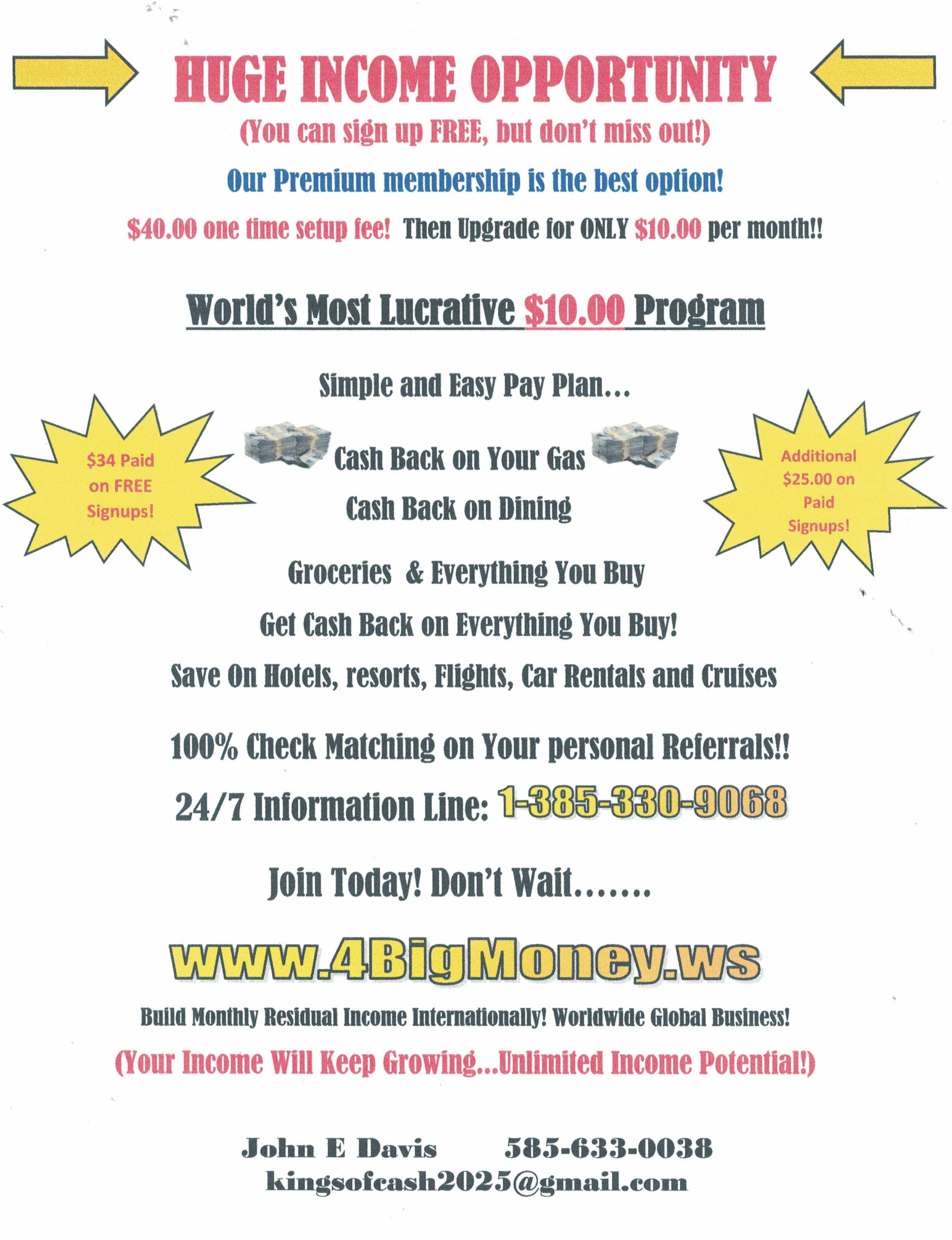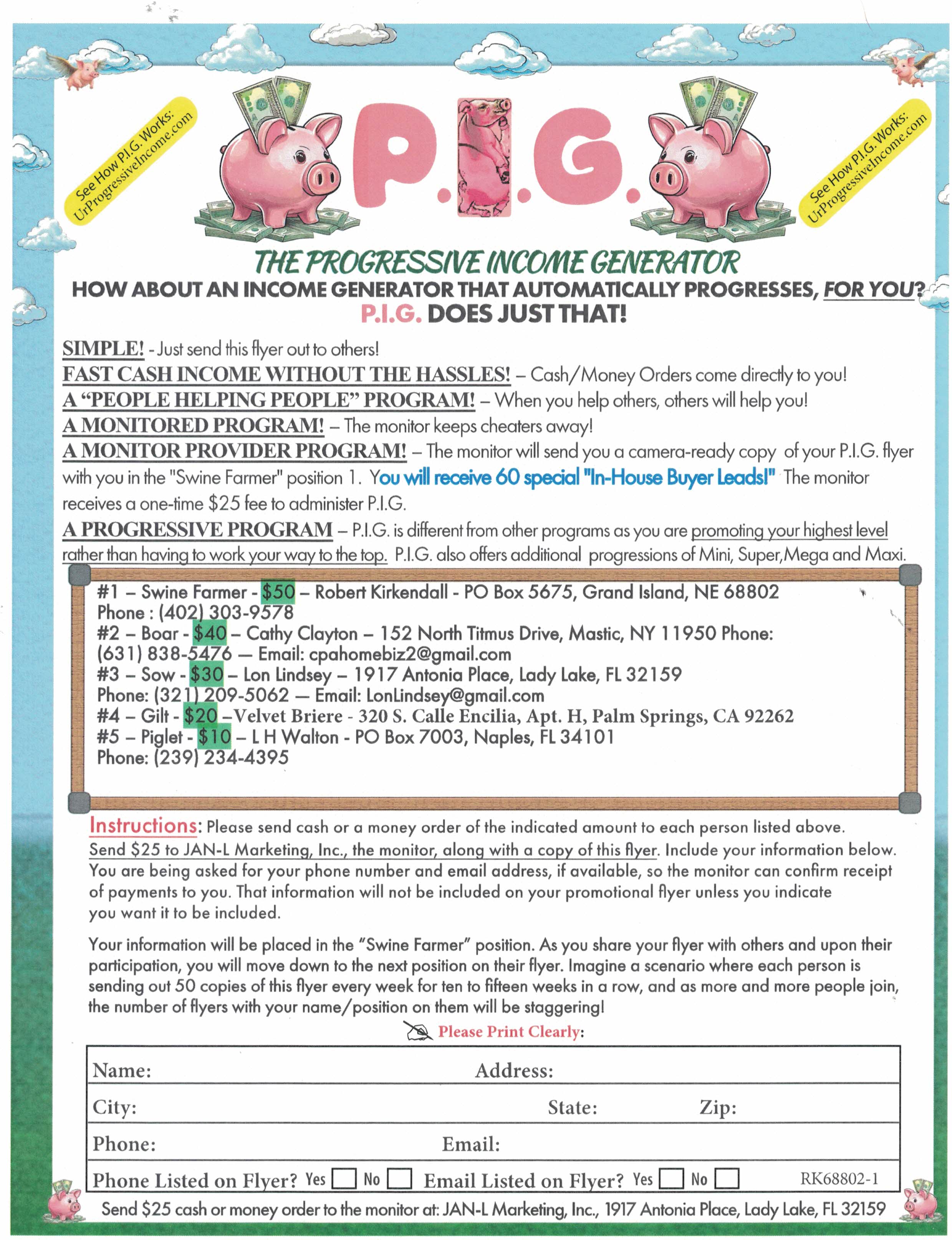 Double-sided 8 X 11 circular or ad sheet .................................................... $5 for 6 months |