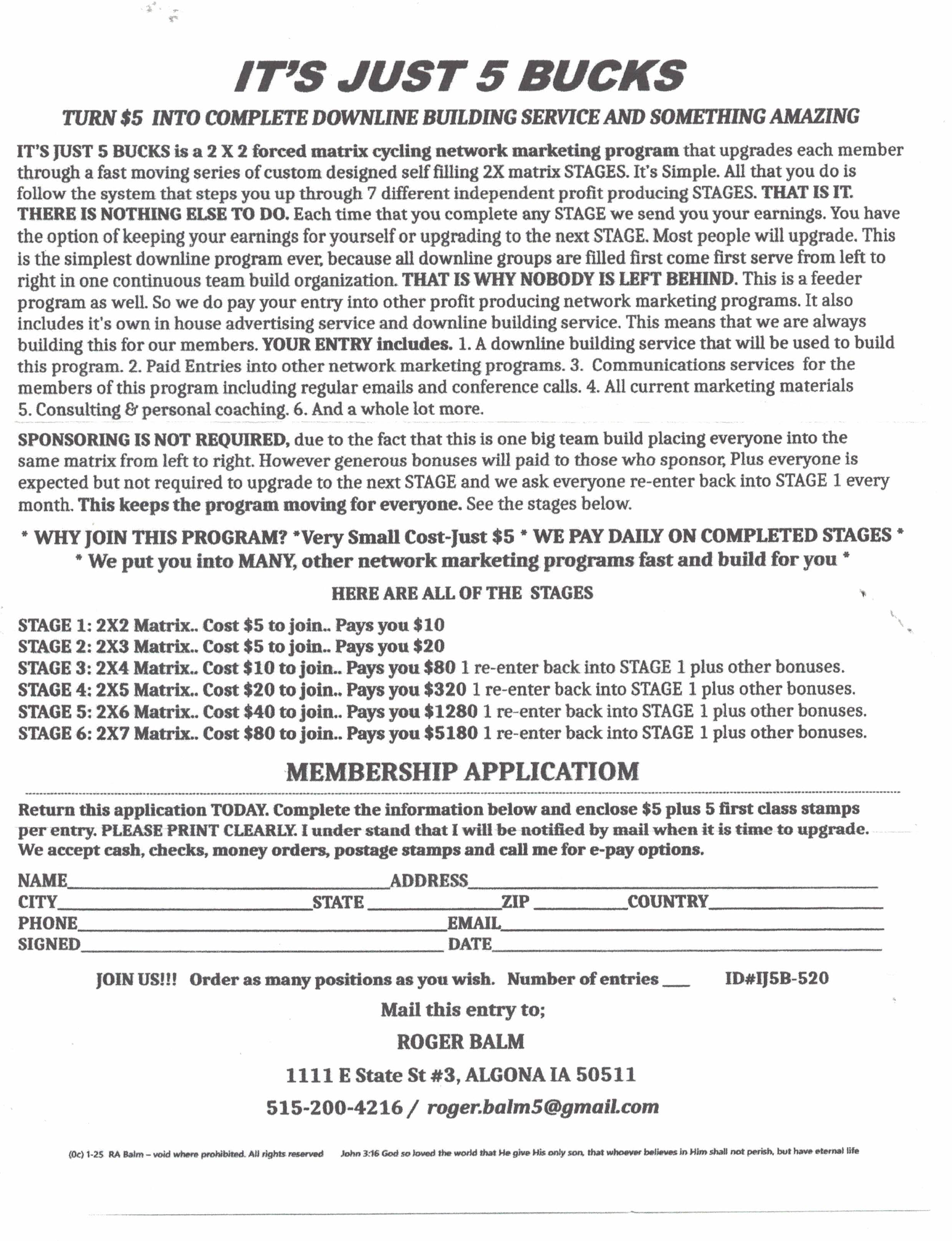 Double-sided 8 X 11 circular or ad sheet .................................................... $5 for 6 months