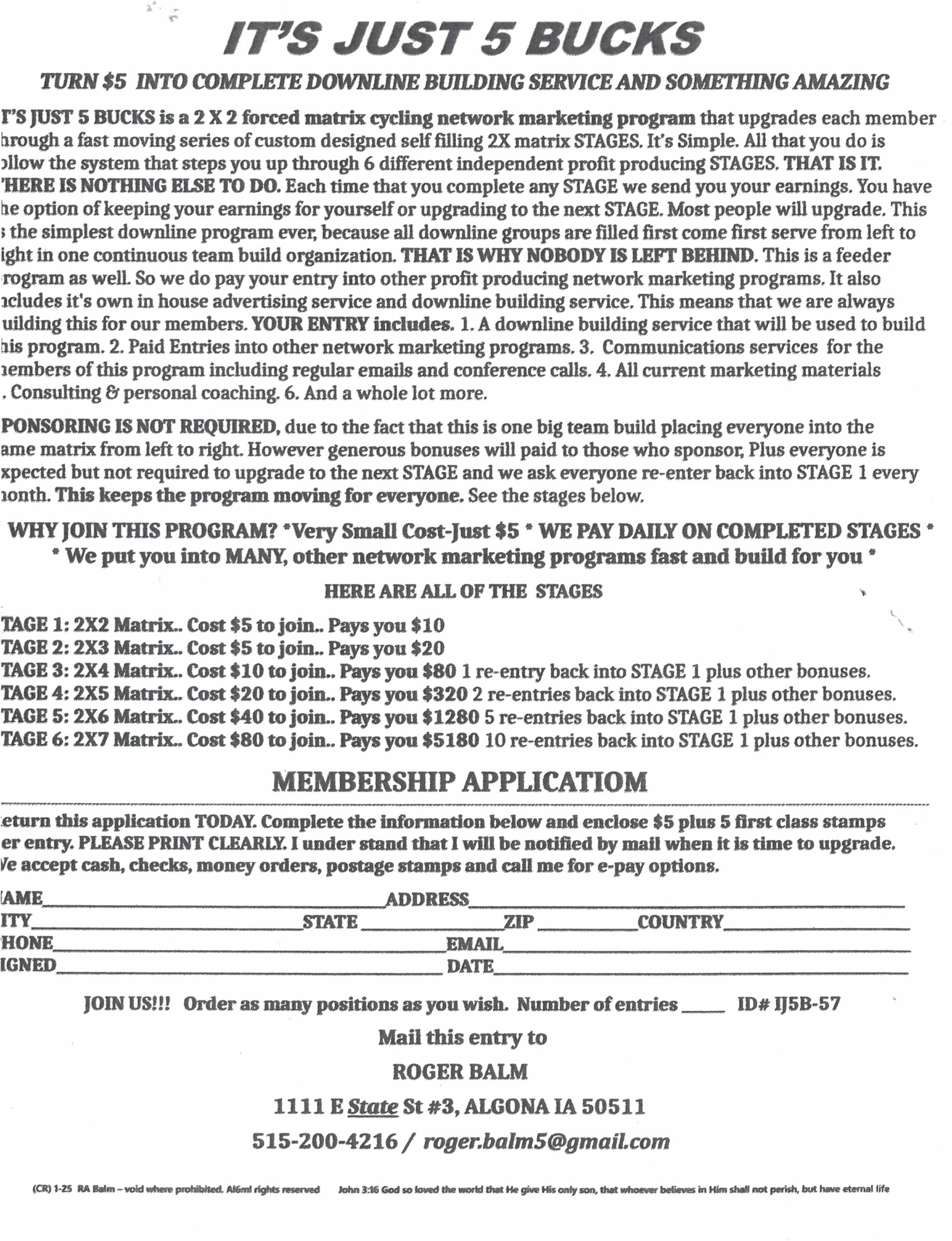 Double-sided 8 X 11 circular or ad sheet .................................................... $5 for 6 months