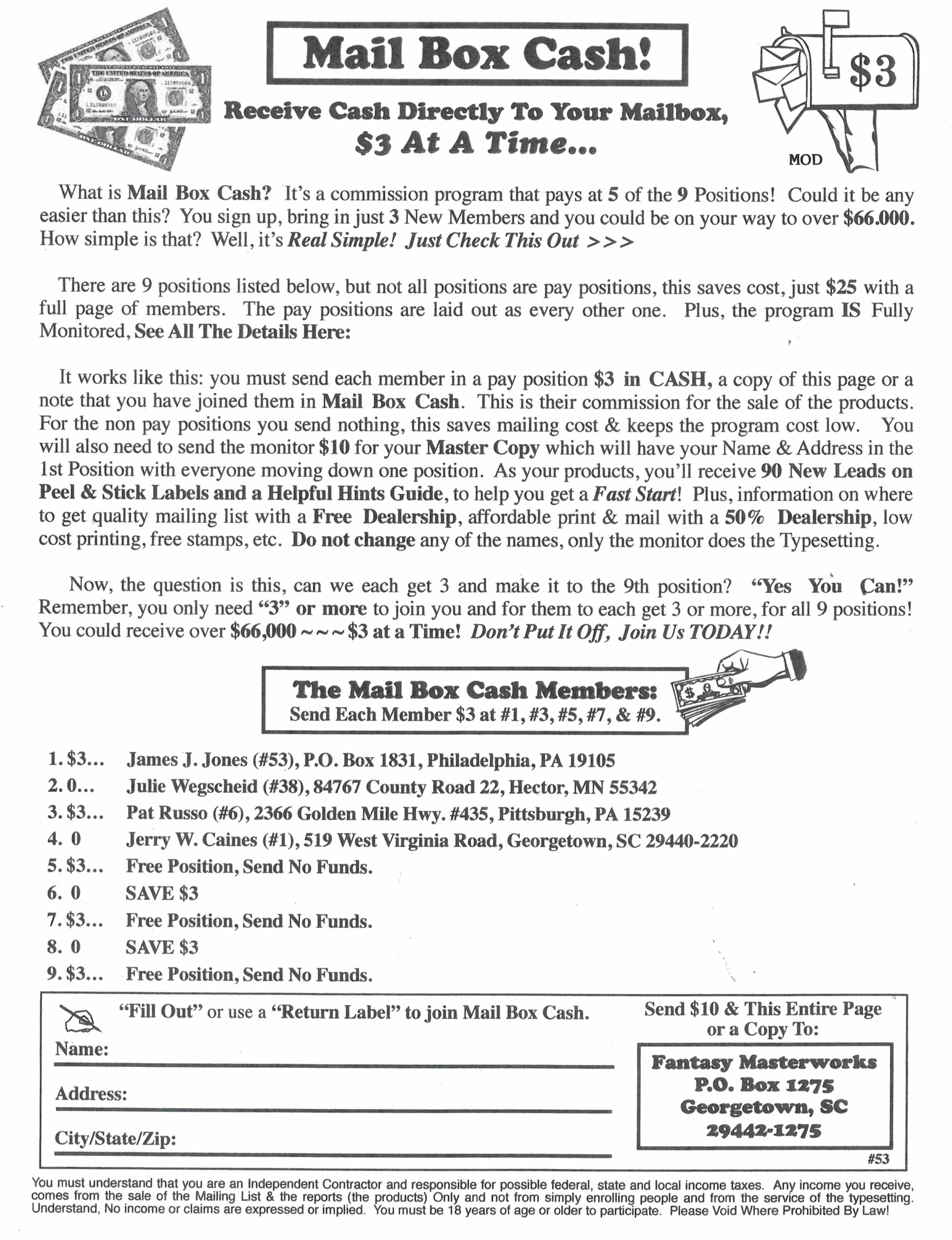 WANT TO RECEIVE OFFERS, PROGRAMS, OPPORTUNTIES, AD SHEETS AND PUBLICATIONS BY FIRST CLASS MAIL? JOIN MY MAILING LIST TODAY !!