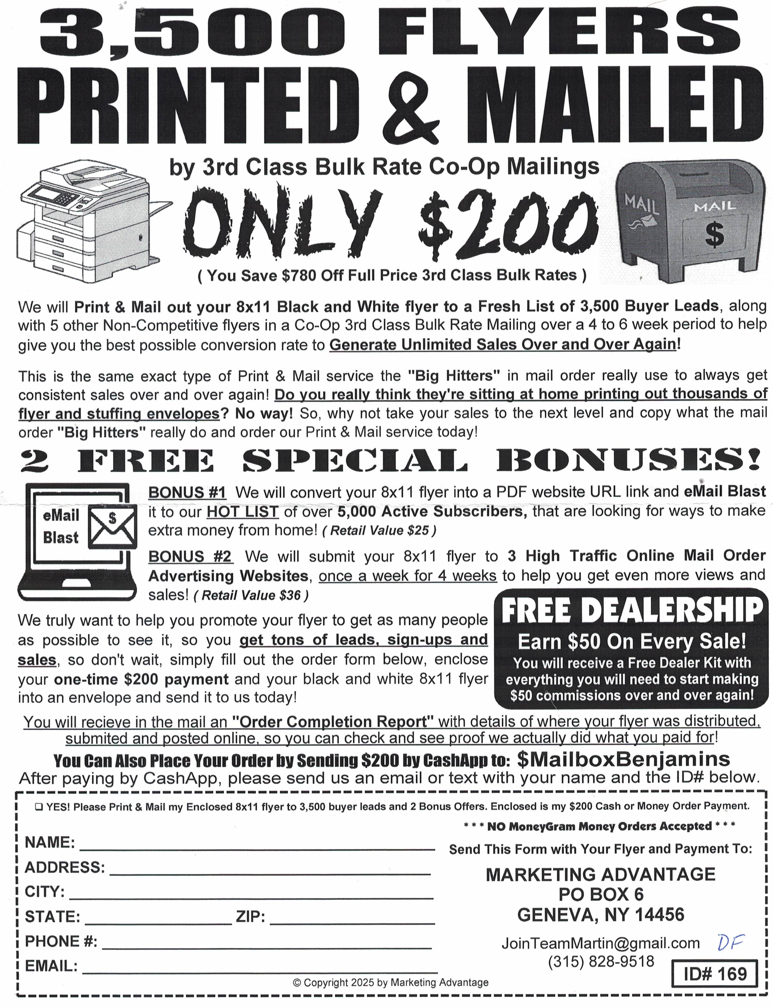 WANT TO RECEIVE OFFERS, PROGRAMS, OPPORTUNTIES, AD SHEETS AND PUBLICATIONS BY FIRST CLASS MAIL? JOIN MY MAILING LIST TODAY !!
