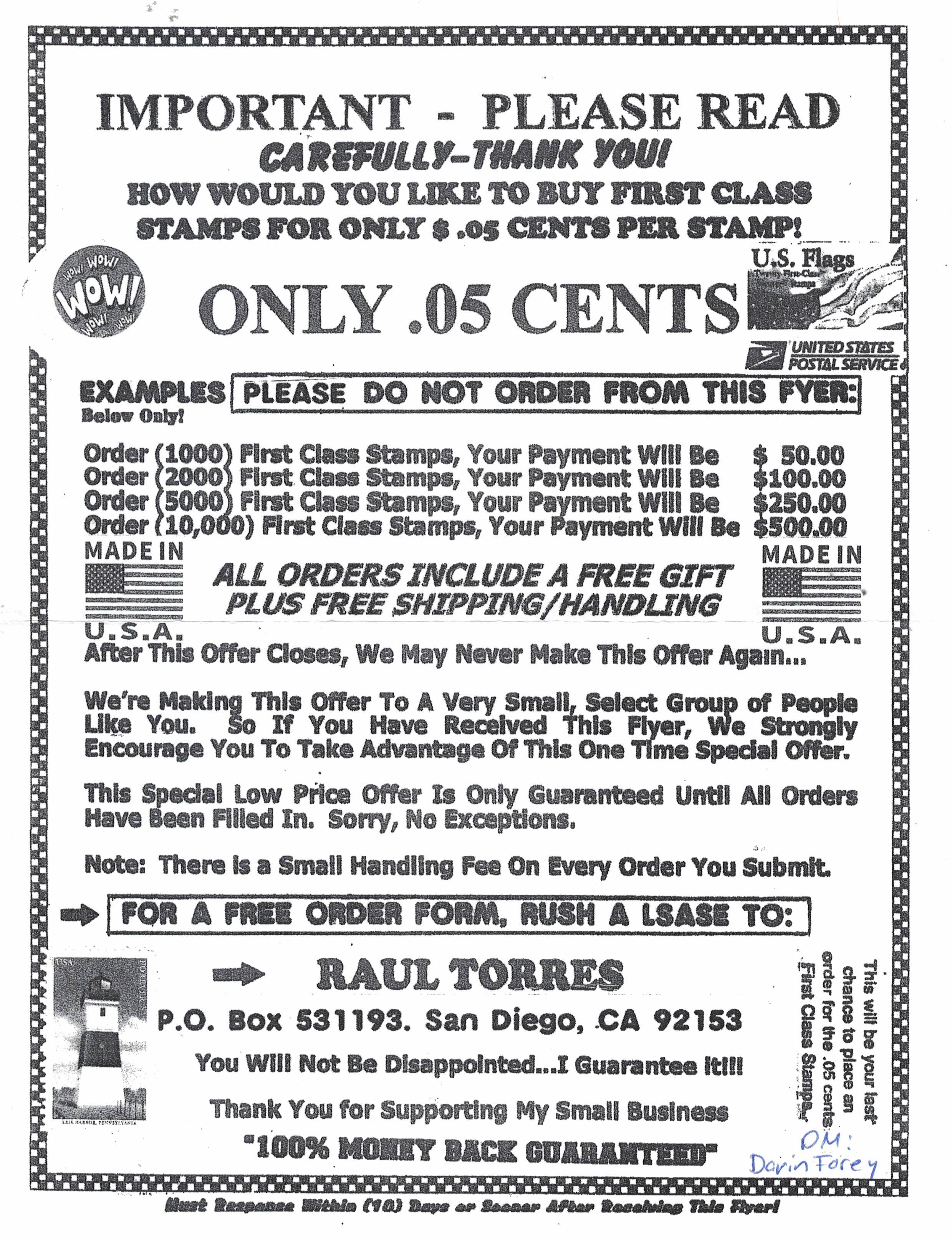 Your 8x11 circular or ad sheet (B&W) printed and mailed to 100 circulation. single-sided $12, double-sided $22. Darin Forey, PO Box 530008, St. Pete FL 33747