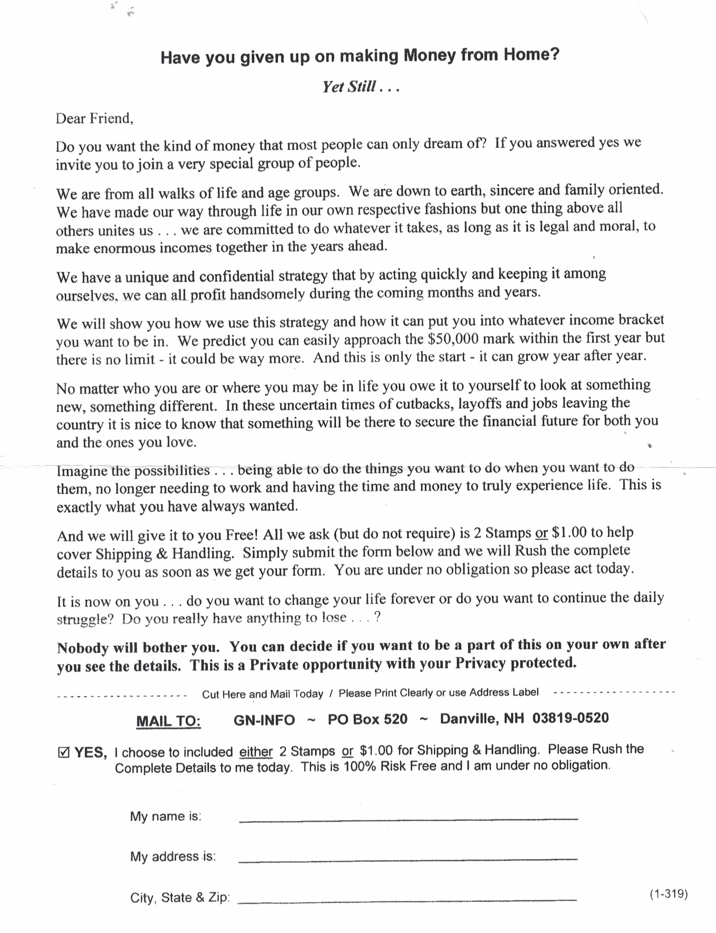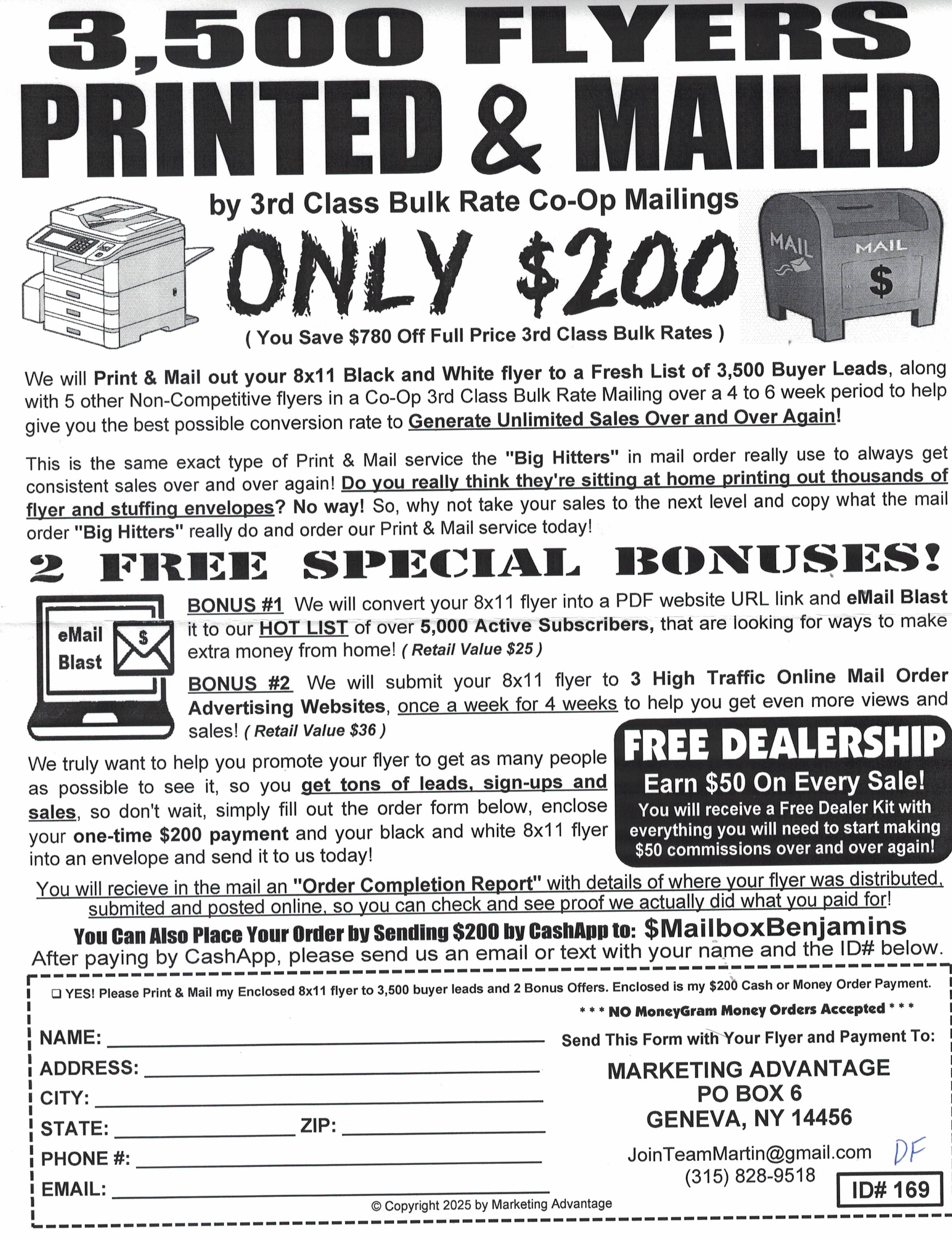 WANT TO RECEIVE OFFERS, PROGRAMS, OPPORTUNTIES, AD SHEETS AND PUBLICATIONS BY FIRST CLASS MAIL? JOIN MY MAILING LIST TODAY !!