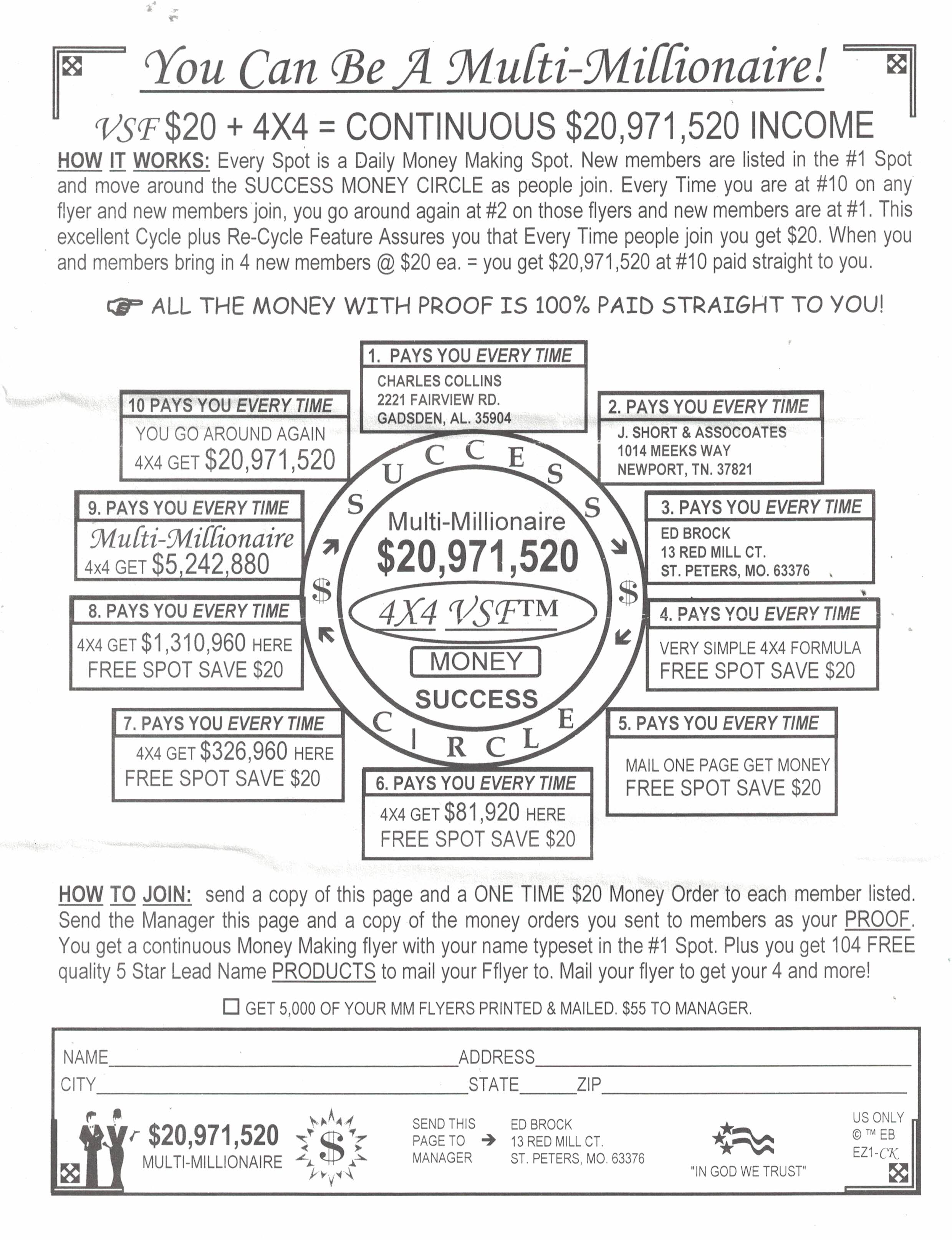 Need free money for debts, mortgage, education, business, fundraising & more? Send a LSASE to: Bruce McFayden, 670 Madison Ave, Daytona Beach FL 32114