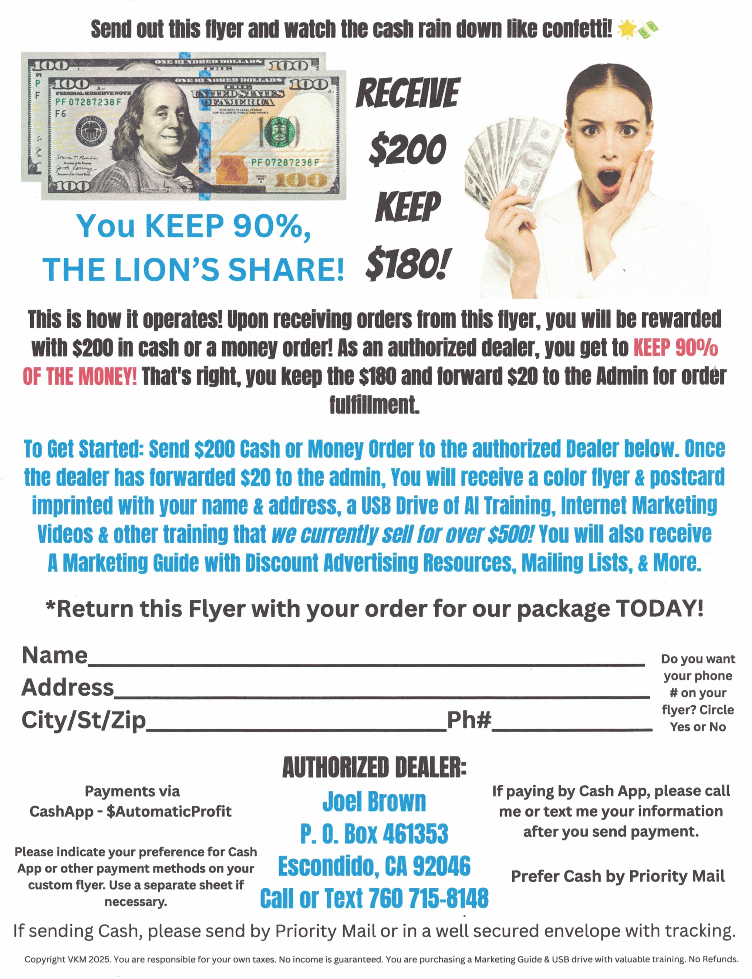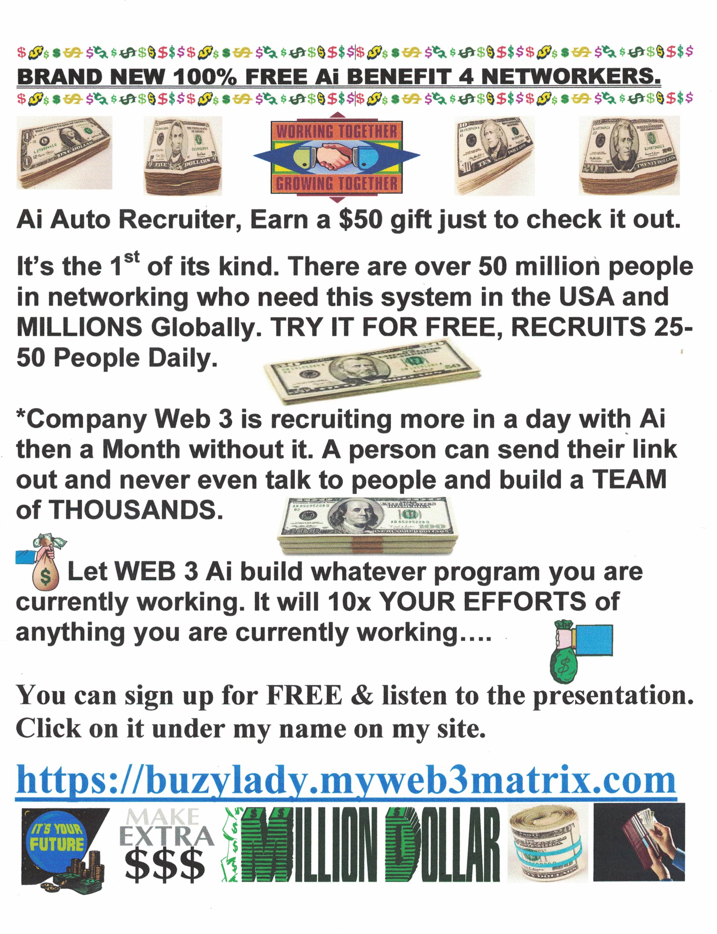 Never be broke again. Join these 20 millionaire programs. Cash will flood your mailbox. Mail $5 + 5 stamps to: Millionaire, PO Box 3084, Memphis TN 38173