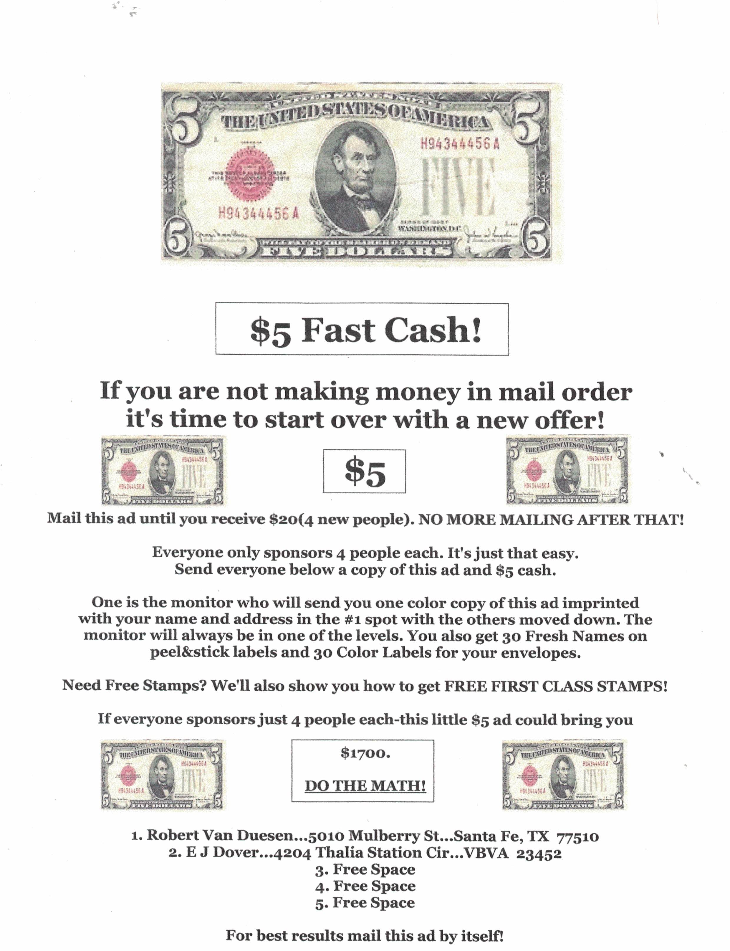Need free money for debts, mortgage, education, business, fundraising & more? Send a LSASE to: Bruce McFayden, 670 Madison Ave, Daytona Beach FL 32114