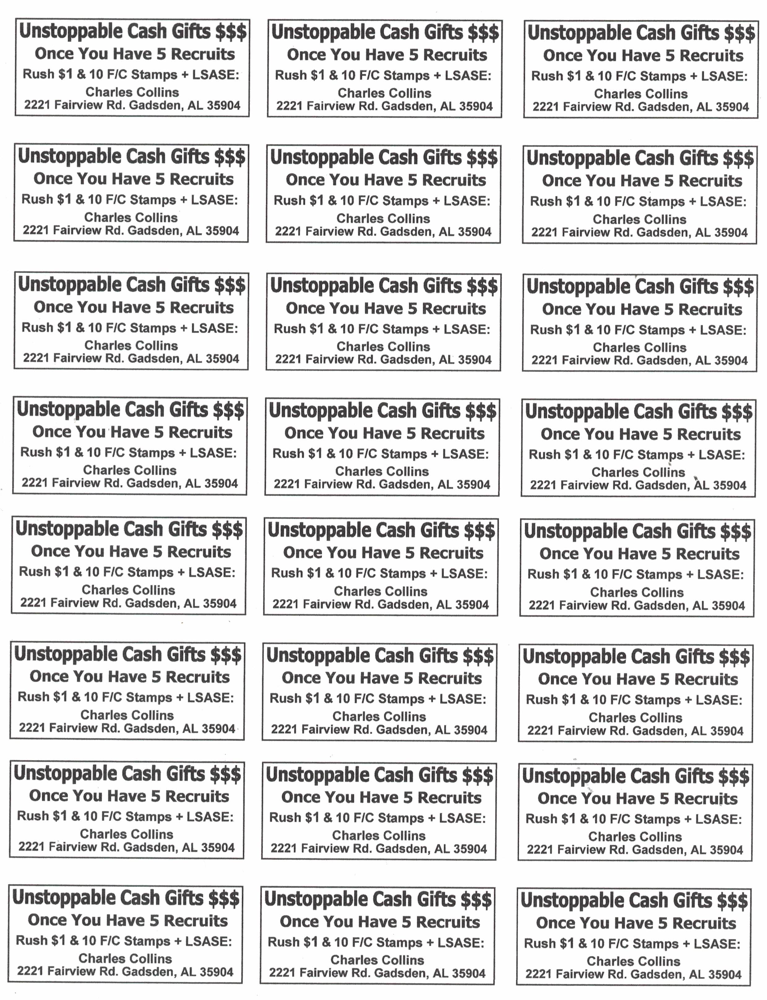 Never buy stamps again! We've got 20 hot money and stamp plans. Order them and start your cash and stamp flow. $5 + 5 stamps to: P&M, Box 3084, Memphis TN 38173