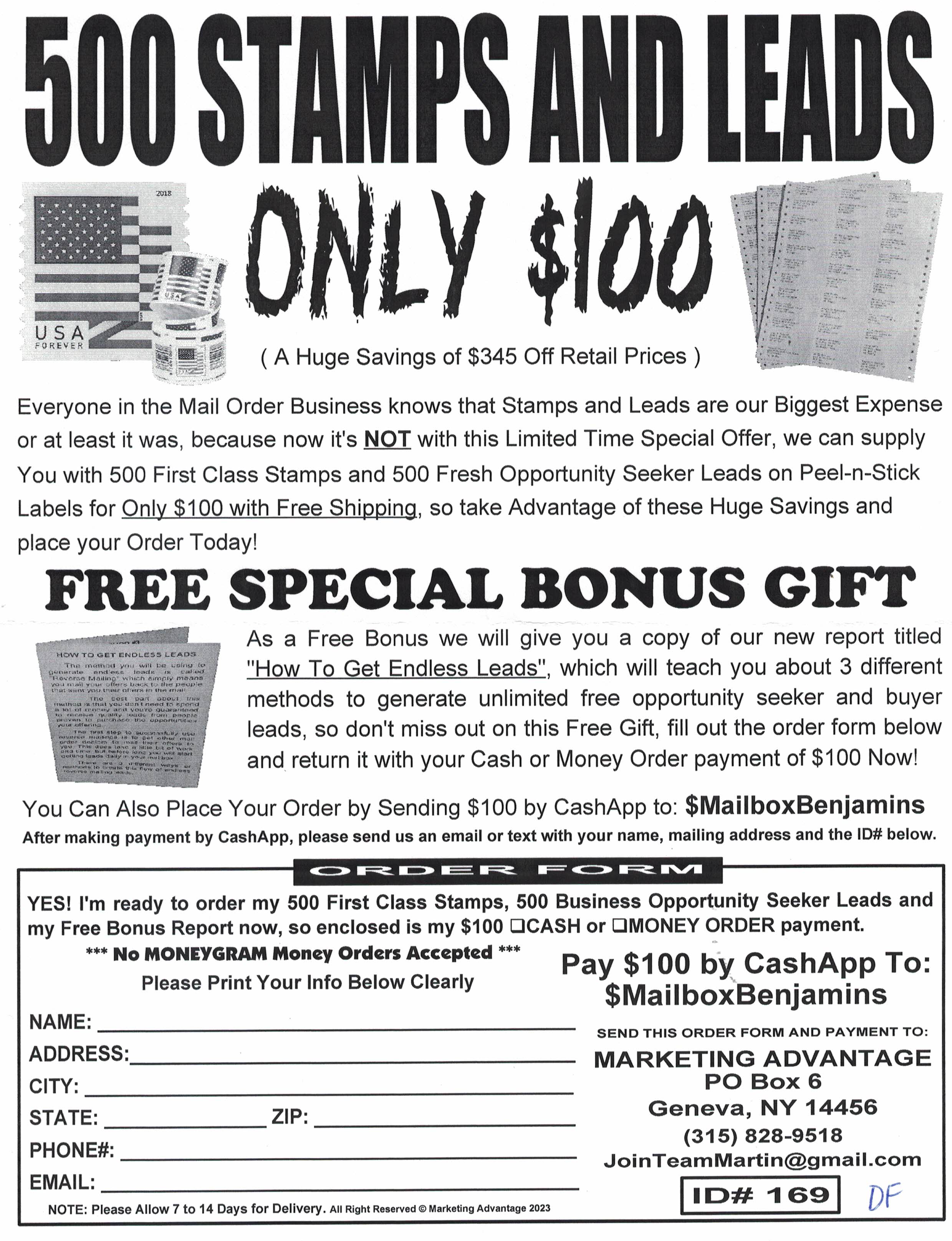 WANT TO RECEIVE OFFERS, PROGRAMS, OPPORTUNTIES, AD SHEETS AND PUBLICATIONS BY FIRST CLASS MAIL? JOIN MY MAILING LIST TODAY !!