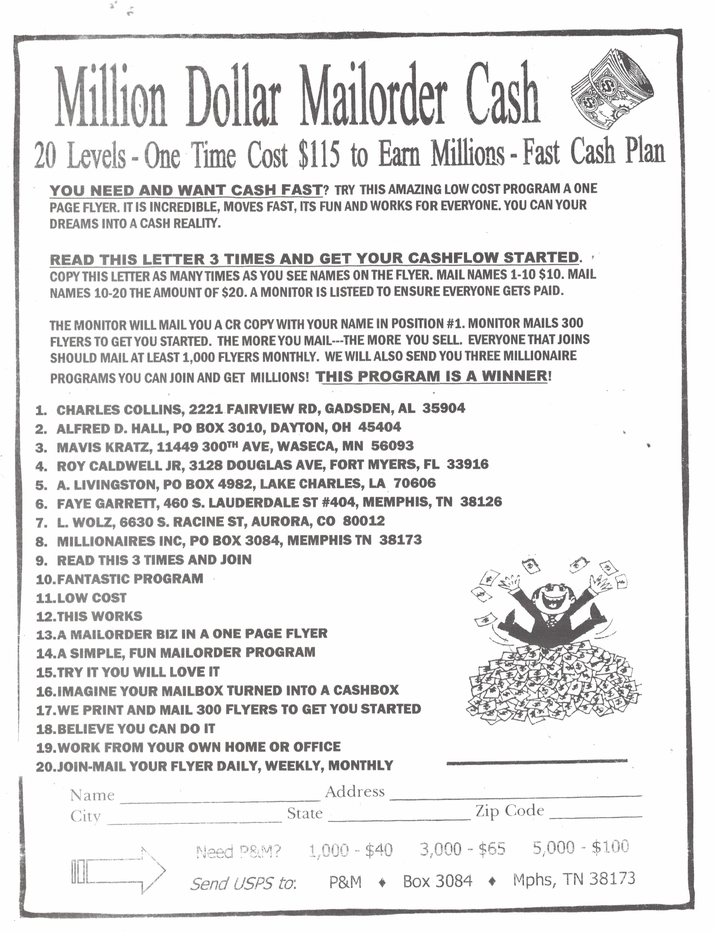 Never buy stamps again! We've got 20 hot money and stamp plans. Order them and start your cash and stamp flow. $5 + 5 stamps to: P&M, Box 3084, Memphis TN 38173