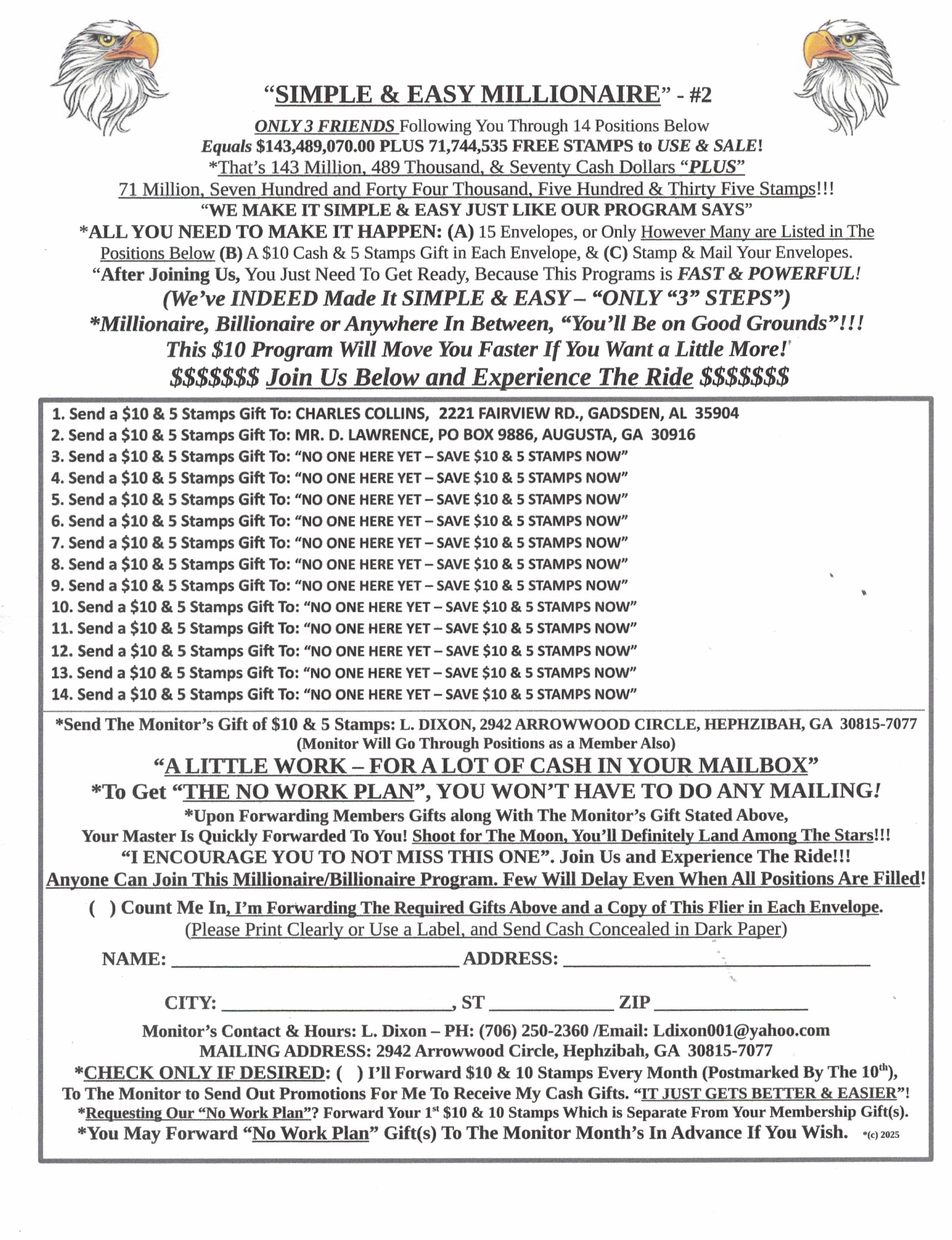 WANT TO RECEIVE OFFERS, PROGRAMS, OPPORTUNTIES, AD SHEETS AND PUBLICATIONS BY FIRST CLASS MAIL? JOIN MY MAILING LIST TODAY !!