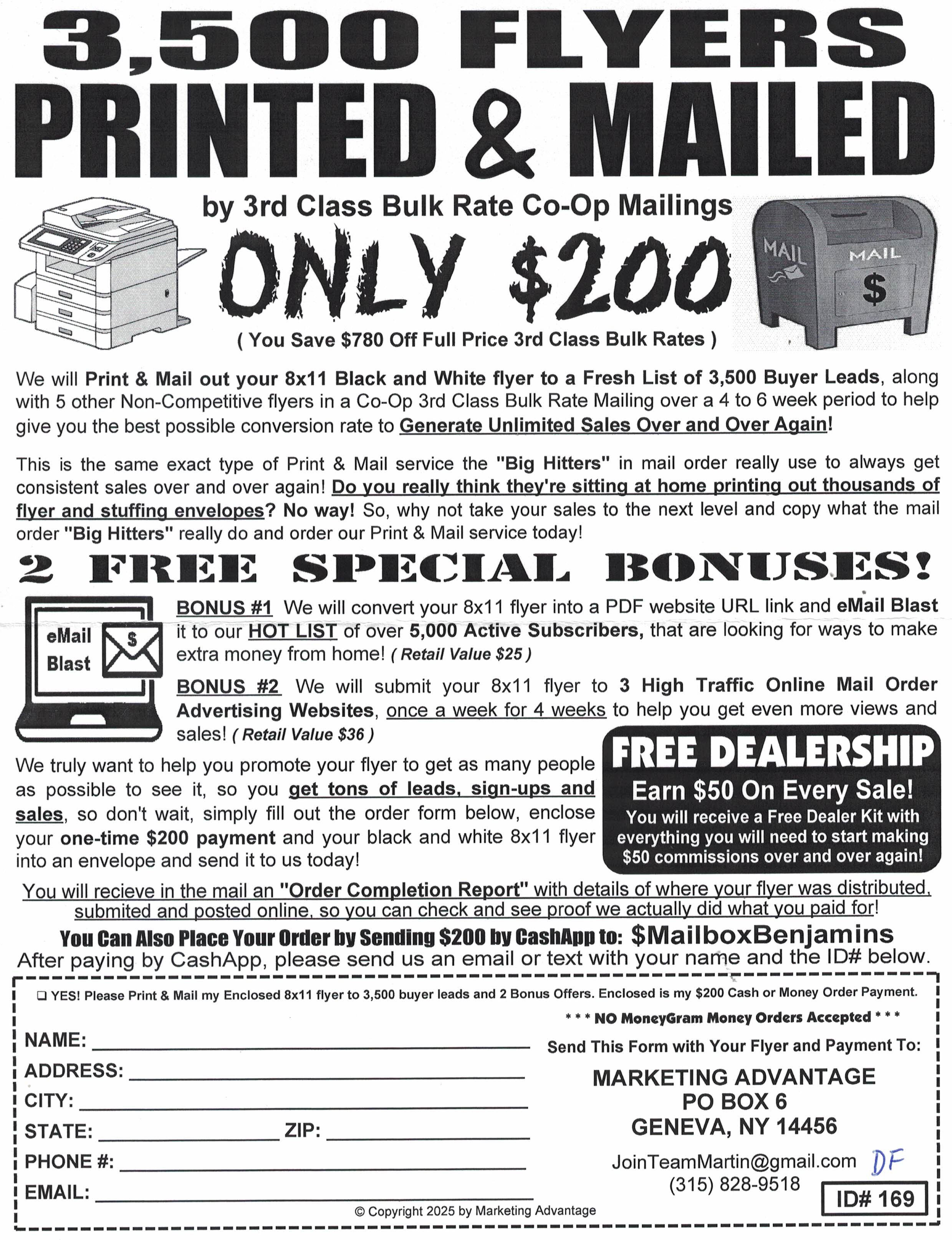 ![]() The Fast 100 Ad Sheet. 100 circulation by first class mail plus unlimited online circulation at www.adsheets.net. $1 per camera-ready inch. Darin Forey, PO Box 530008, St. Pete FL 33747 The Mail Train Ad Sheet. 500 circulation by first class mail plus unlimited online circulation at www.adsheets.net. $2 per camera-ready inch. Please include 1 forever stamp with order. Darin Forey, PO Box 530008, St. Pete FL 33747 Your listing here. Click for details ![]() Your listing here. Click for details ![]() 180 hot names on paper $8 or peel and stick labels $15. Darin Forey, PO Box 530008, Saint Pete FL 33747 Your listing here. Click for details | ![]() Your 8x11 circular or ad sheet (B&W) printed and mailed to 100 circulation. single-sided $12, double-sided $22. Darin Forey, PO Box 530008, St. Pete FL 33747 Your listing here. Click for details ![]() Your listing here. Click for details ![]() Your listing here. Click for details | ![]() Your 60 words or less typeset in to a 2" camera ready ad. You receive 9 copies of your new ad. $3 + 1 F/C stamp. Darin Forey, PO Box 530008, St. Pete FL 33747 Your 90 words or less typeset in to a 3" camera ready ad. You receive 9 copies of your new ad. $4 + 1 F/C stamp. Darin Forey, PO Box 530008, St. Pete FL 33747 Your 30 words or less typeset in to a 1" camera ready ad. You receive 9 copies of your new ad. $2 + 1 F/C stamp. Darin Forey, PO Box 530008, St. Pete FL 33747 Your listing here. Click for details ![]() Your listing here. Click for details |
