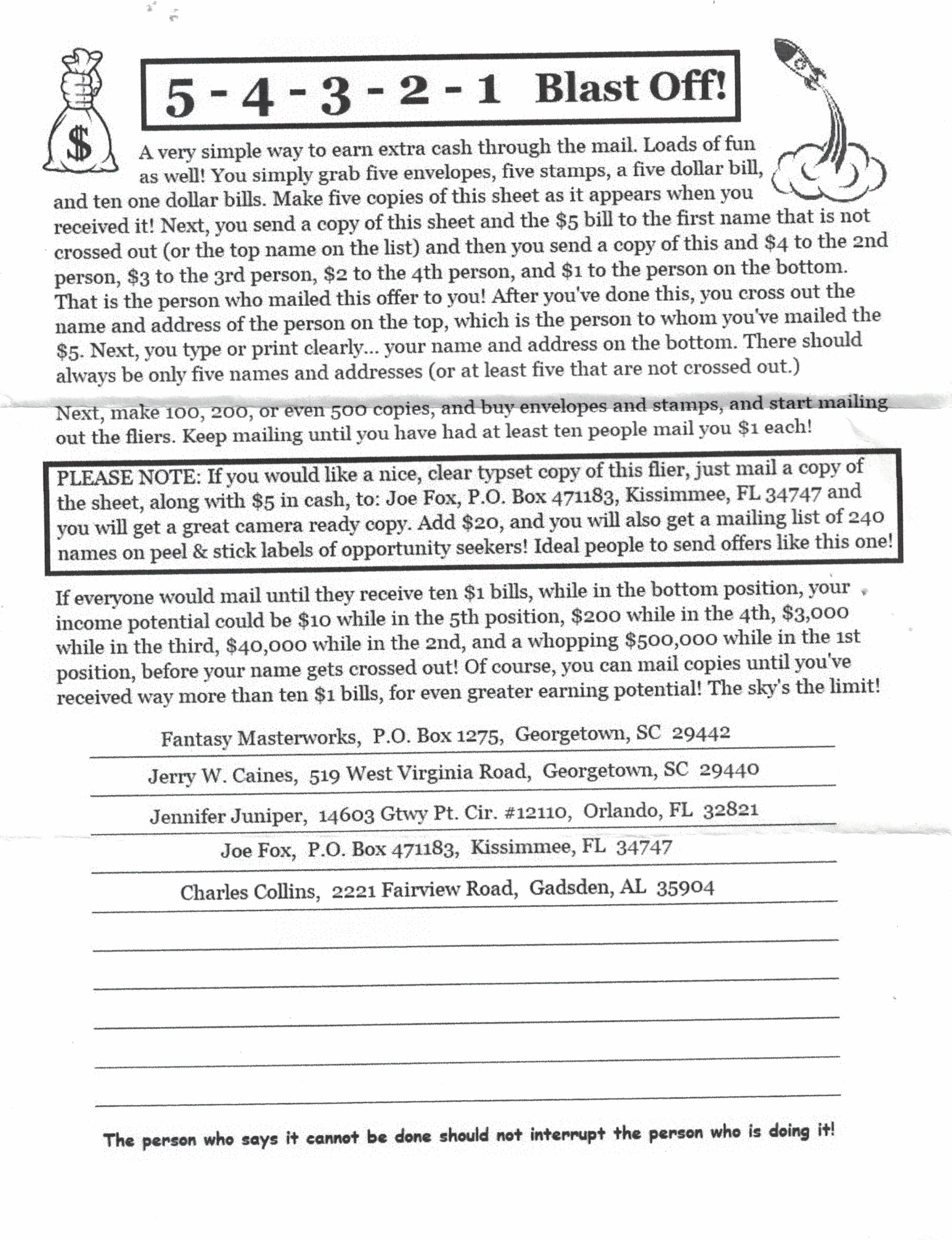Need free money for debts, mortgage, education, business, fundraising & more? Send a LSASE to: Bruce McFayden, 670 Madison Ave, Daytona Beach FL 32114