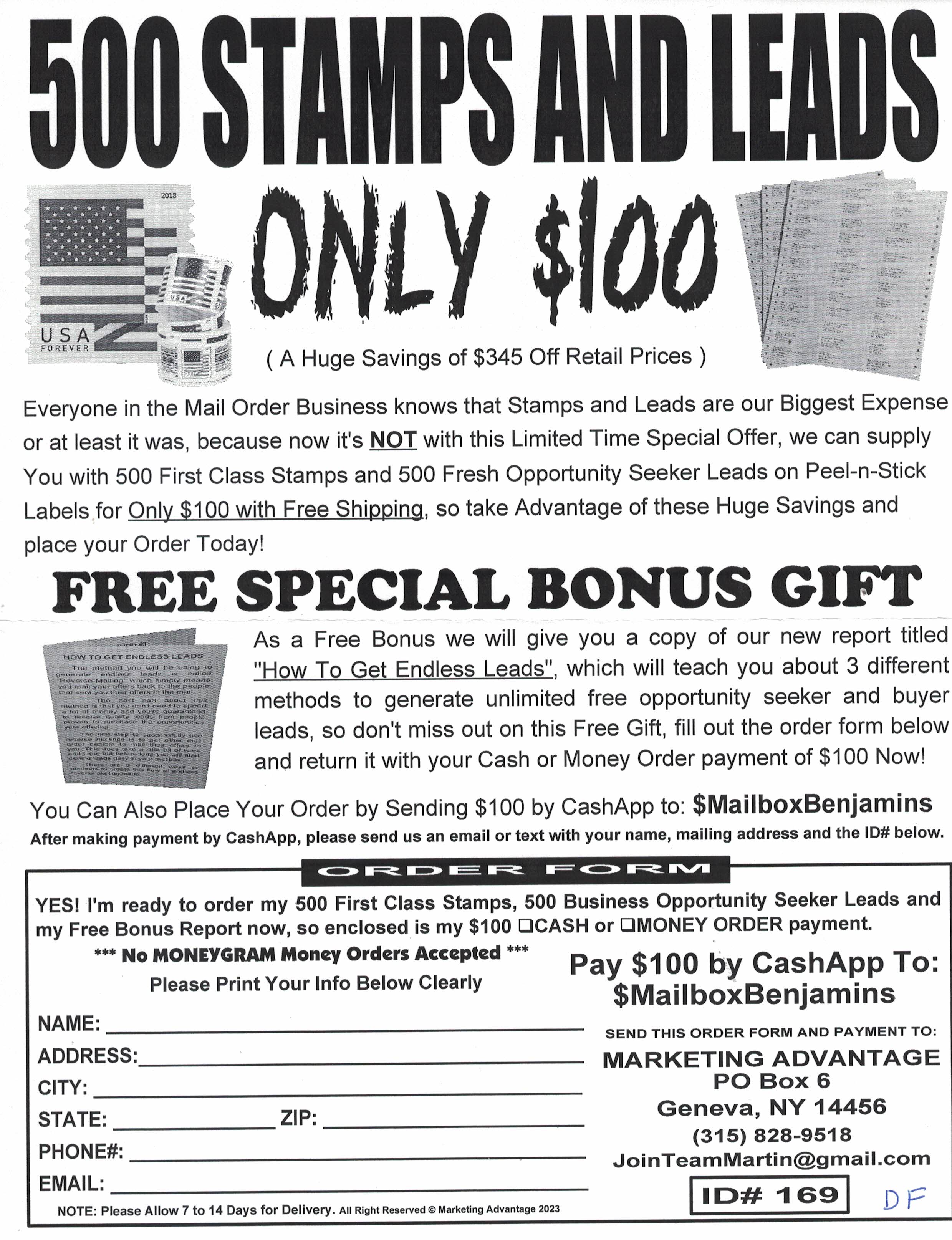 WANT TO RECEIVE OFFERS, PROGRAMS, OPPORTUNTIES, AD SHEETS AND PUBLICATIONS BY FIRST CLASS MAIL? JOIN MY MAILING LIST TODAY !!