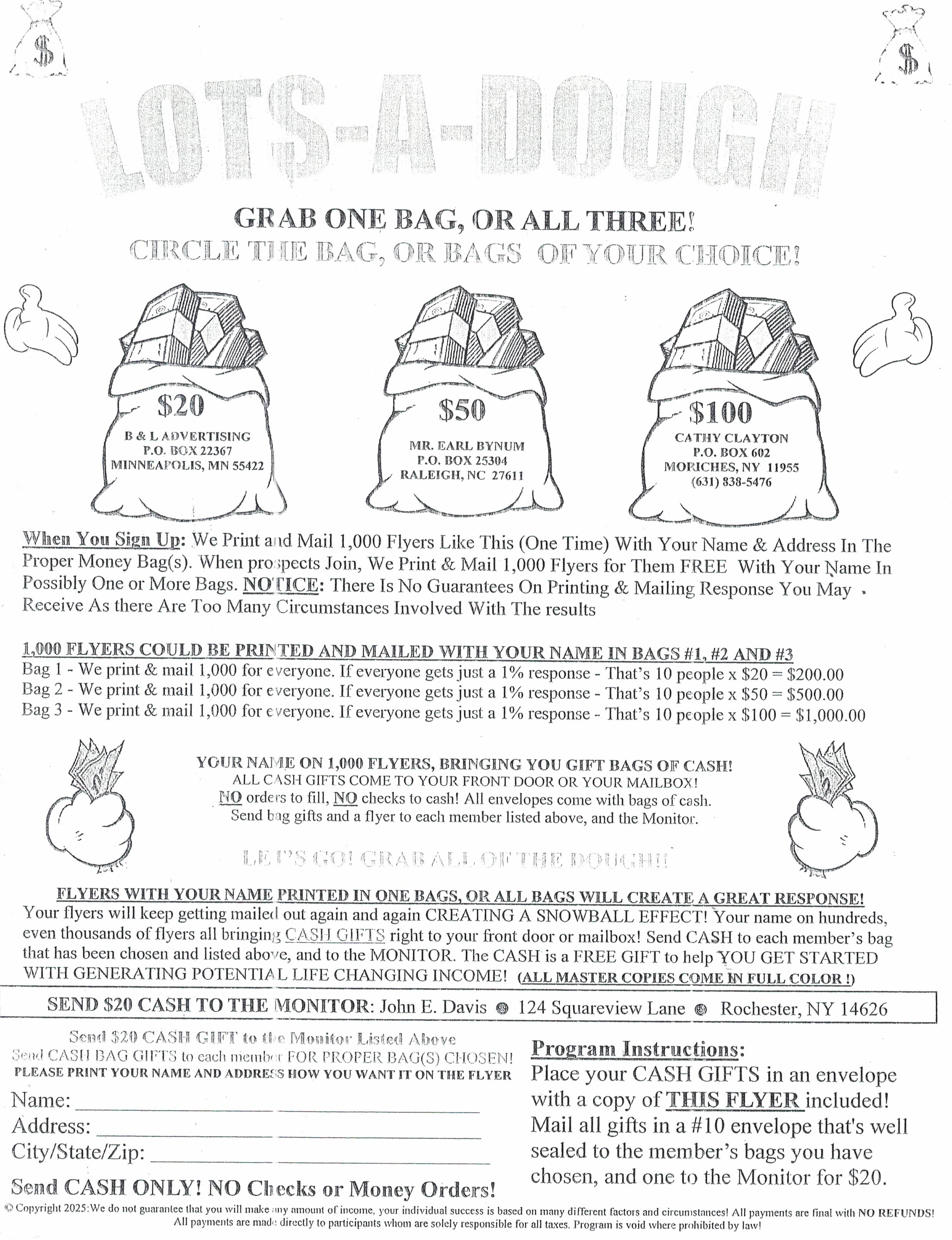 | Double-sided 8 X 11 circular or ad sheet .................................................... $5 for 6 months | Mail Order Services Directory Listing ........................... $1.50 - $3 per month (see pricing) |