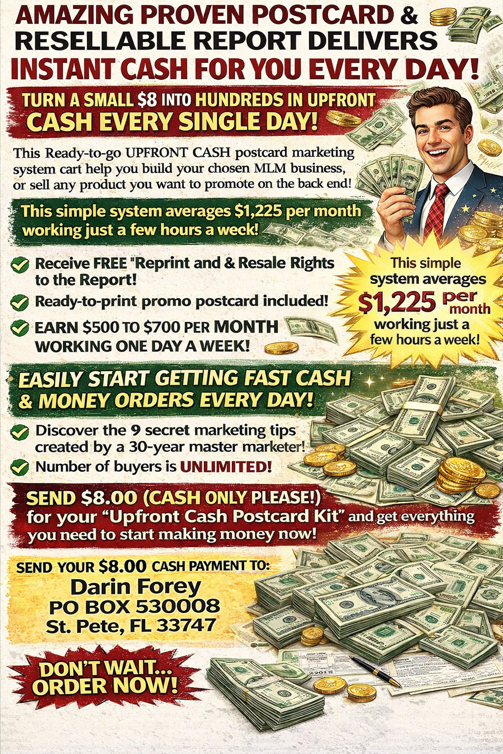 I want to advertise in your ad sheets, publications and big mails. Send rate information to: Darin Forey, PO Box 530008, St. Pete FL 33747