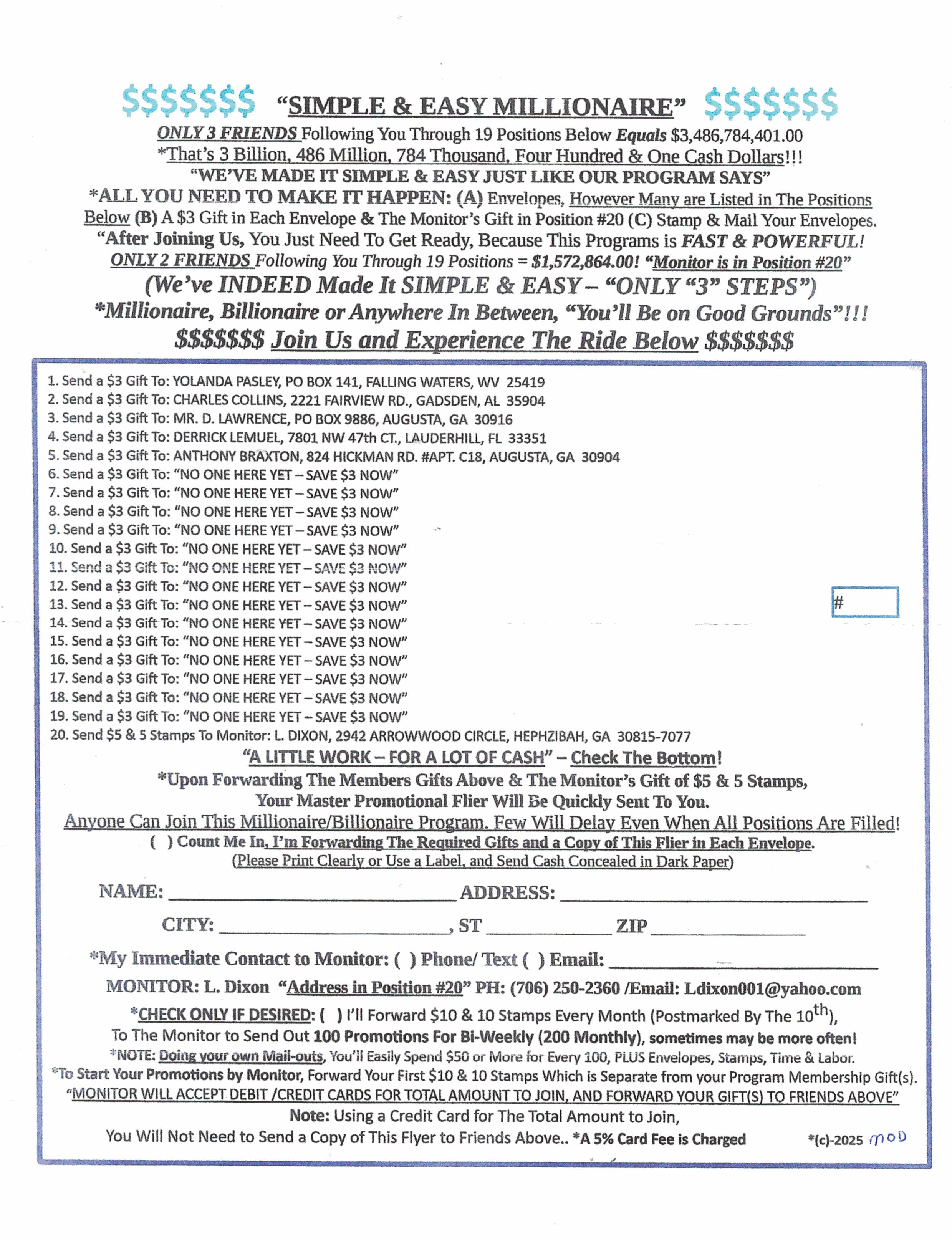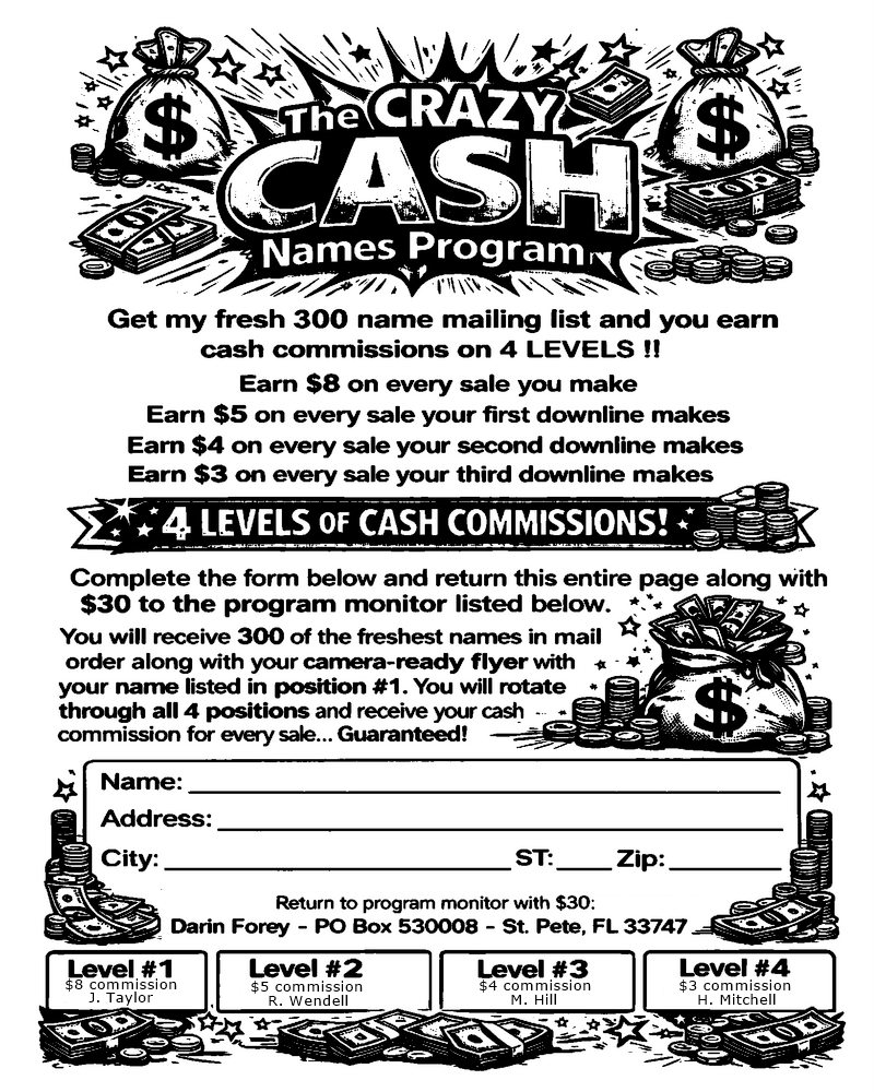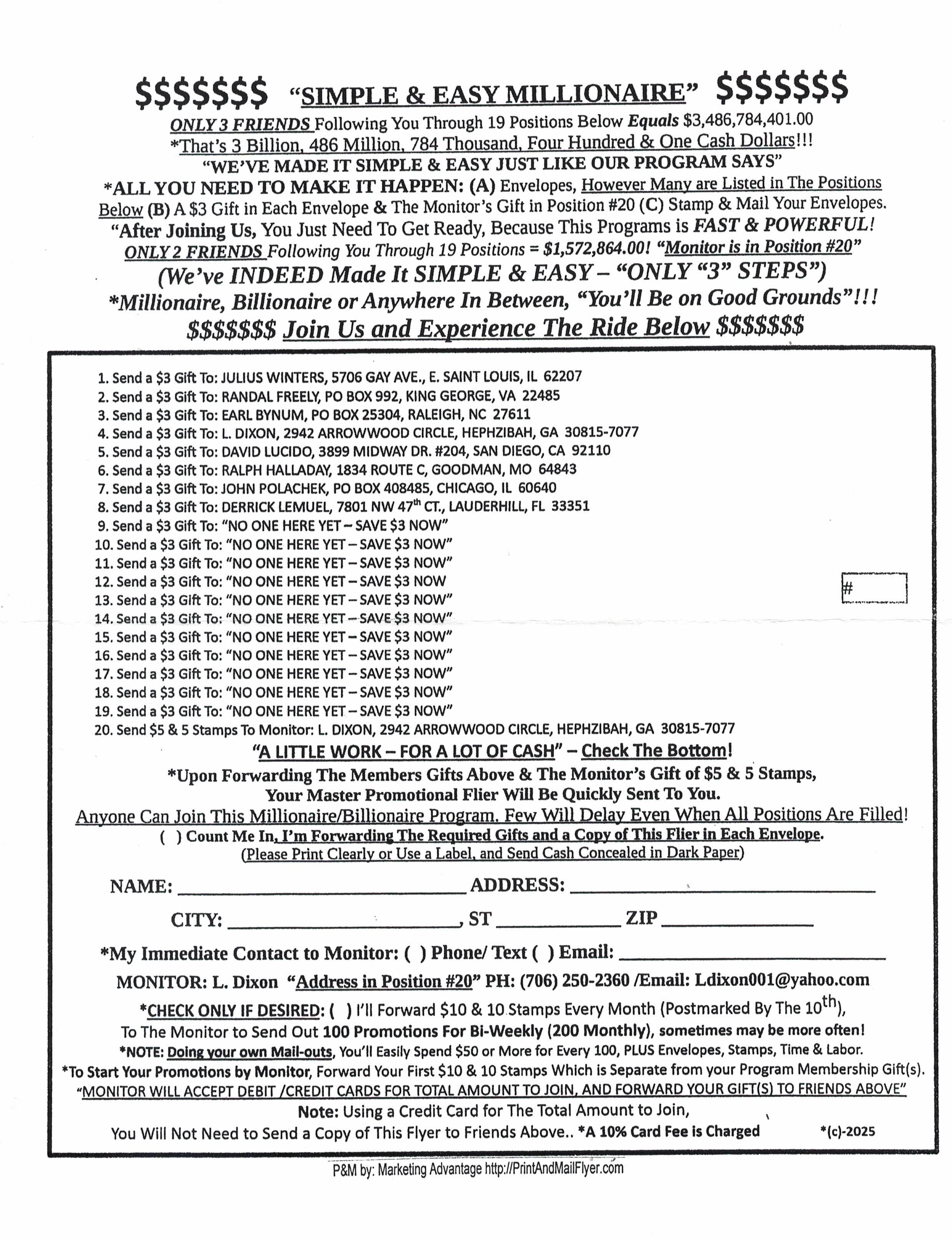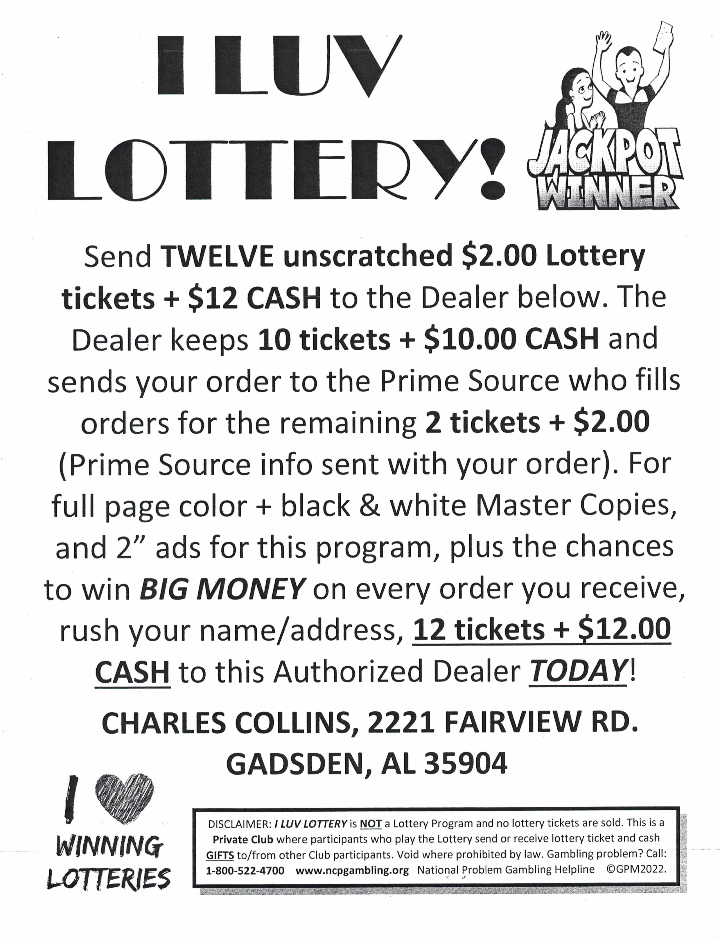 4/7/26 - Big D's Mail Order Advertiser Issue #0426 has been published. You can view it online by clicking here. 3/16/26 - Mail dealer Charles Collins of Gadsden, AL has returned from vacation and open for cash gifting across the country. 3/7/26 - NEW! Need to contact the publisher? Save a stamp and click the link above with your questions or comments. I will respond by email. |