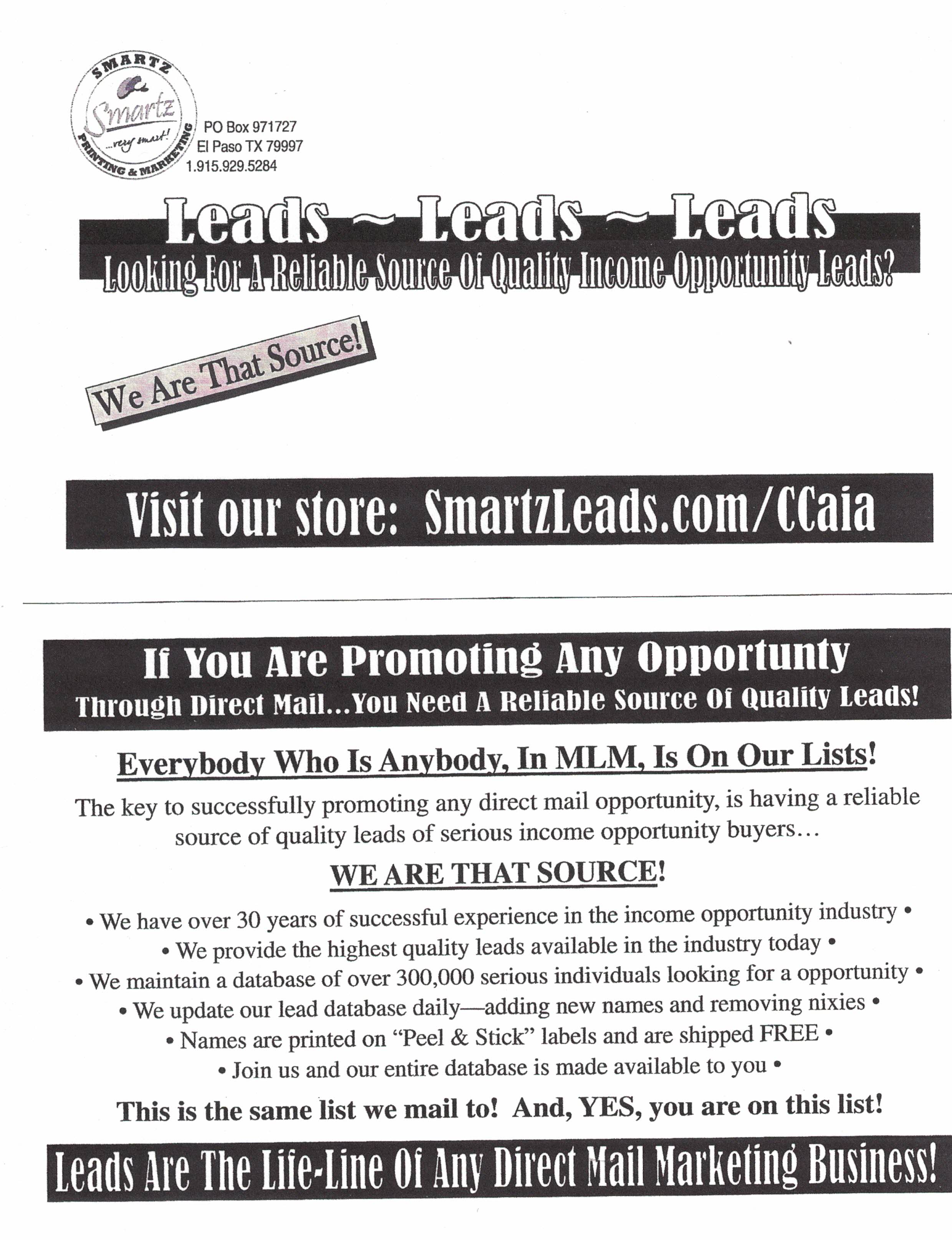 Double-sided 8 X 11 circular or ad sheet .................................................... $5 for 6 months