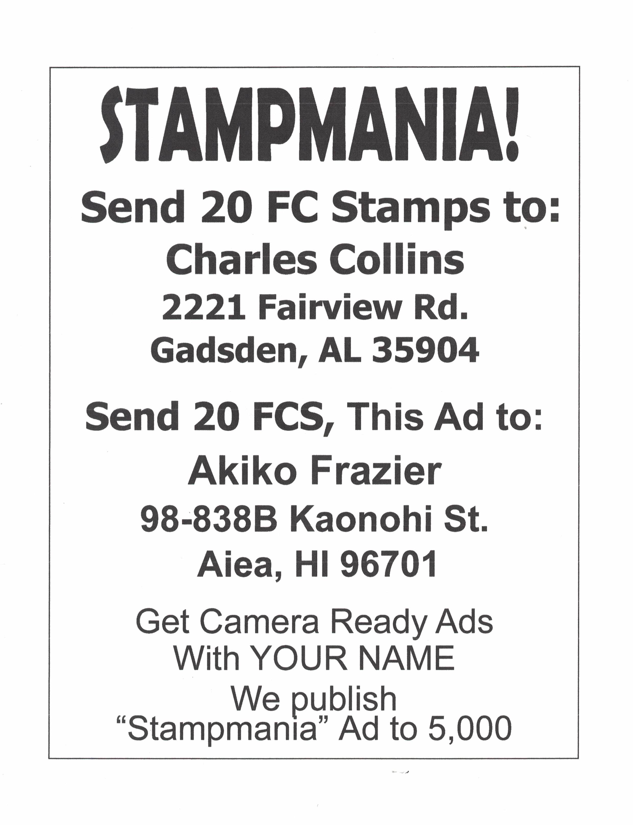 3/16/26 - Mail dealer Charles Collins of Gadsden, AL has returned from vacation and open for cash gifting across the country.