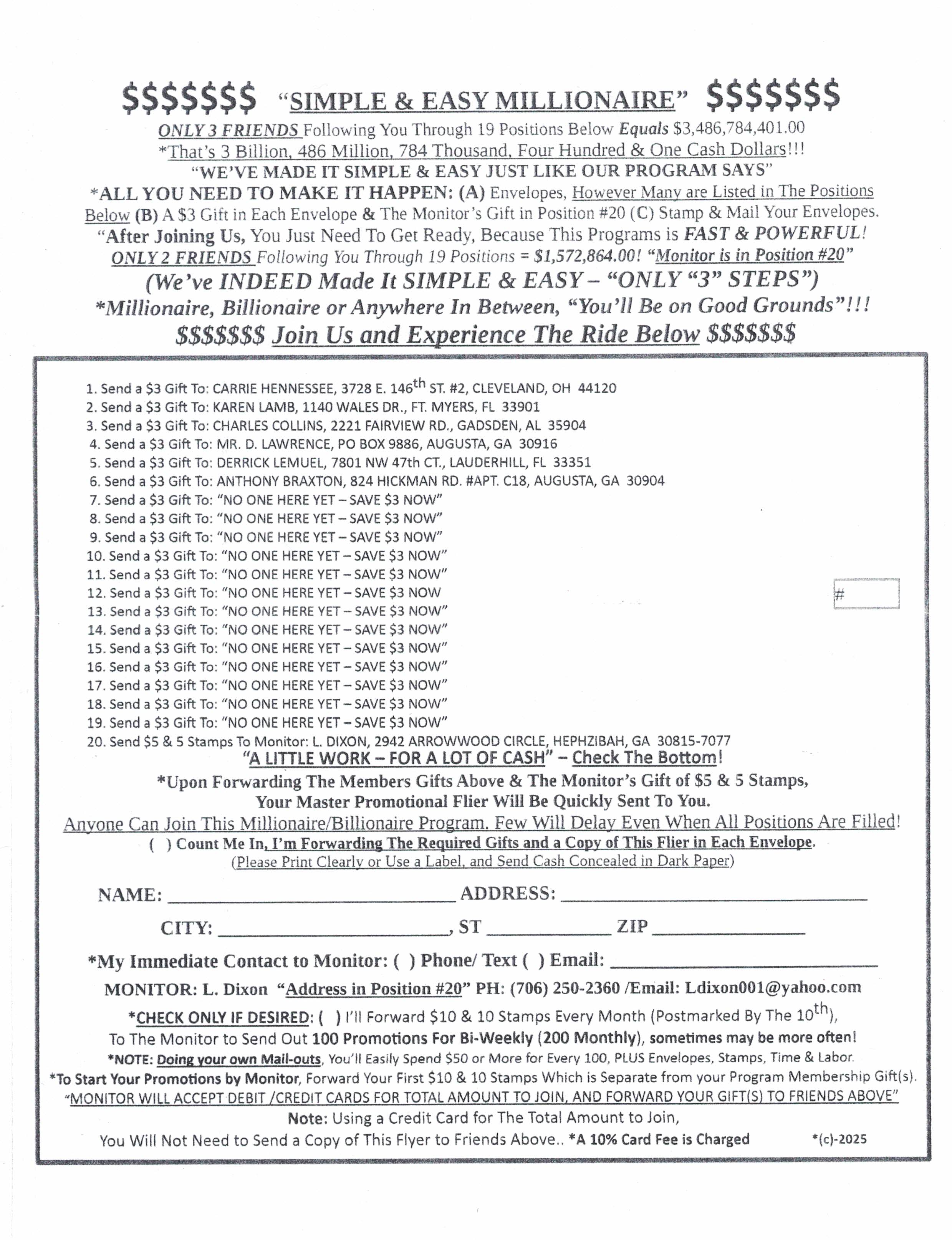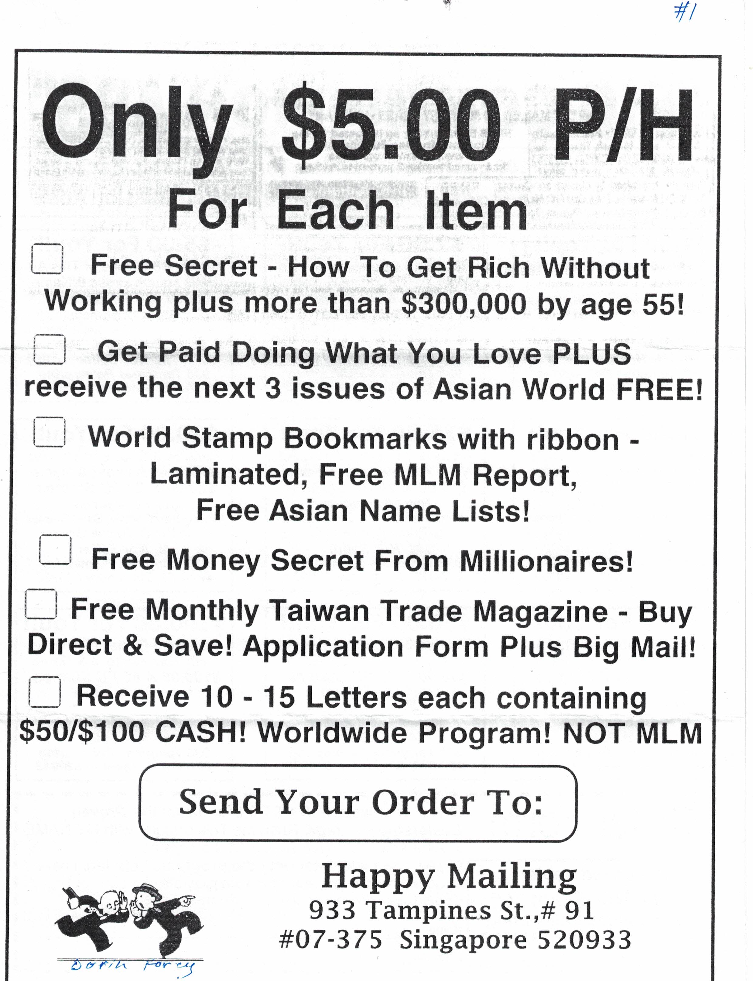 I receive a lot of cash from new members. One-time payment! Testimonial and proof in big mail! Rush $6 cash to: EDB-Good Program, 933 Tampines Palm Spring #07-375, Singapore 520933