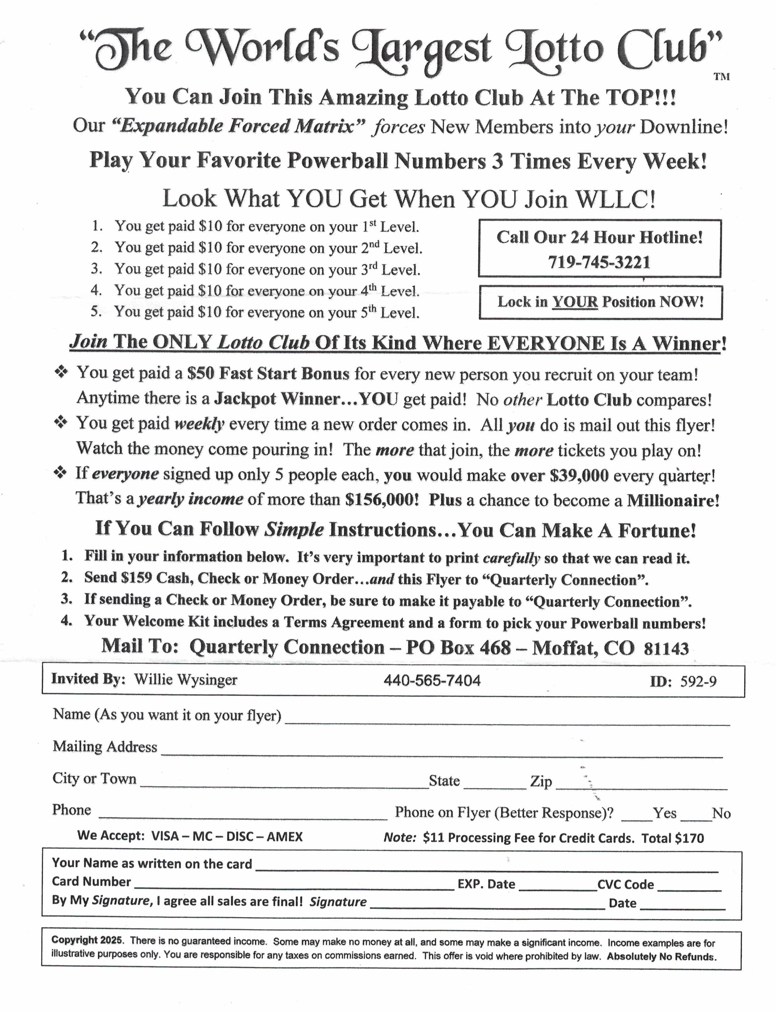 Never be broke again. Join these 20 millionaire programs. Cash will flood your mailbox. Mail $5 + 5 stamps to: Millionaire, PO Box 3084, Memphis TN 38173