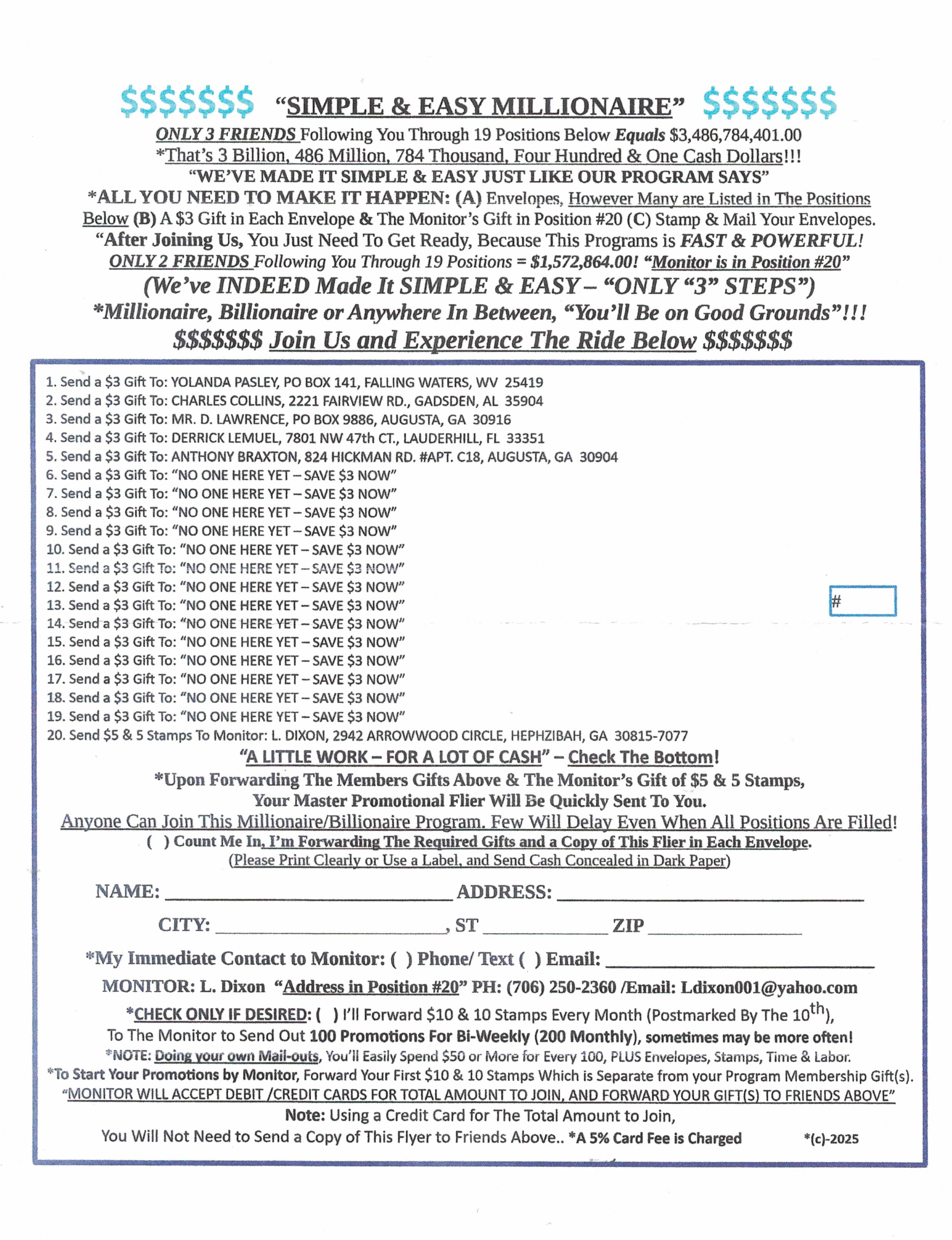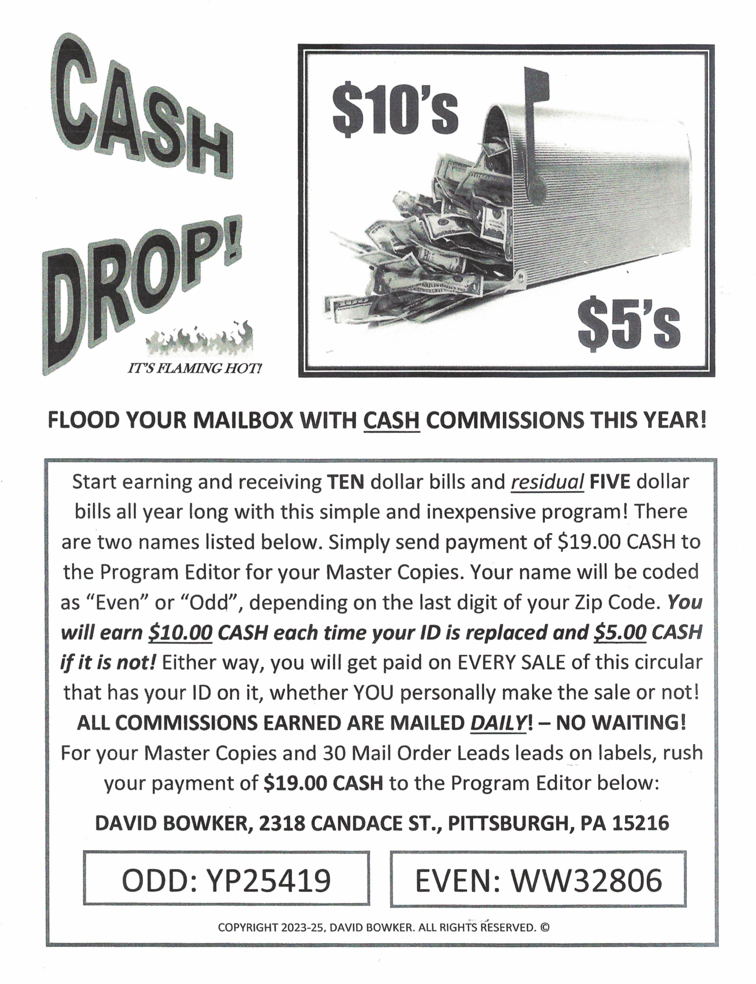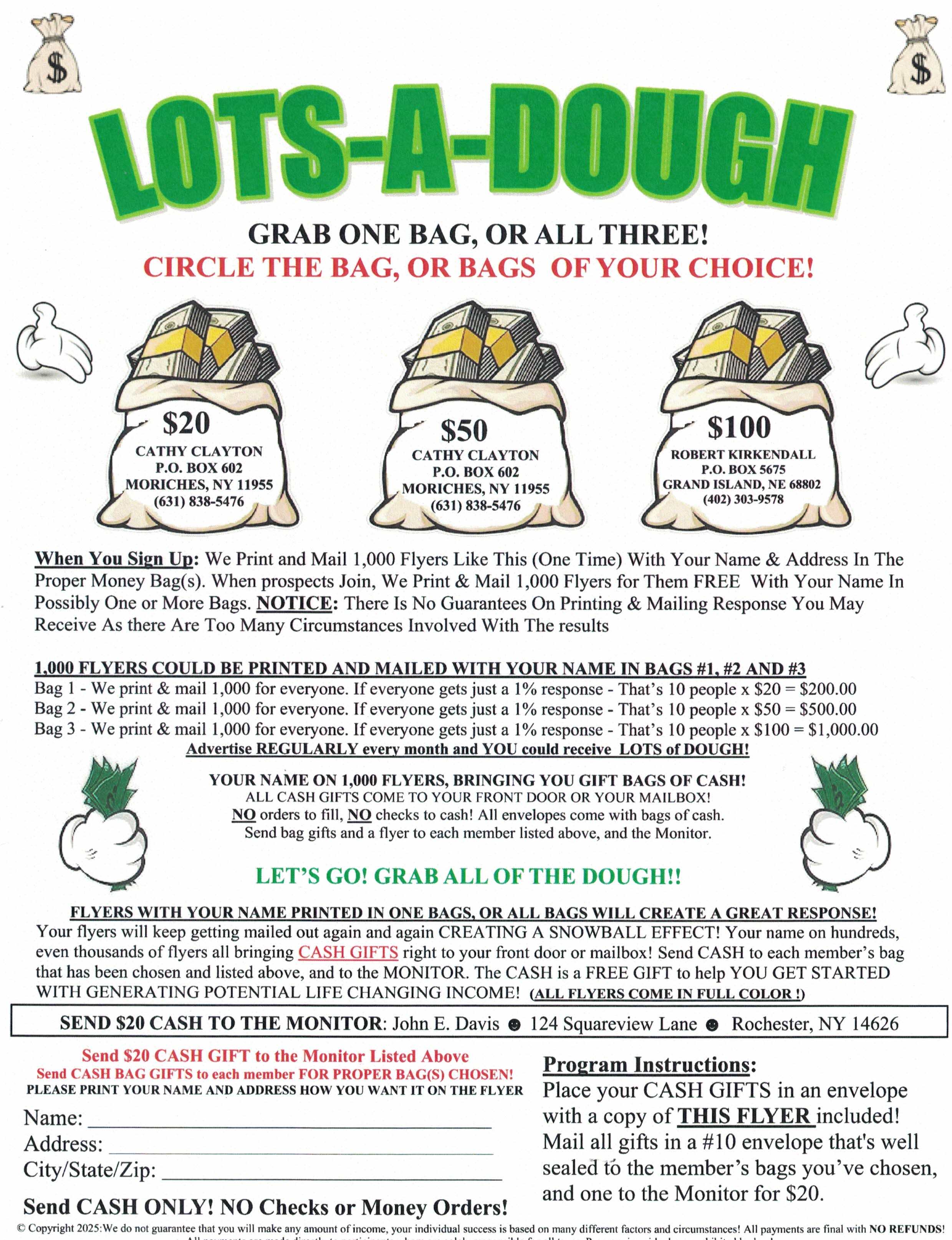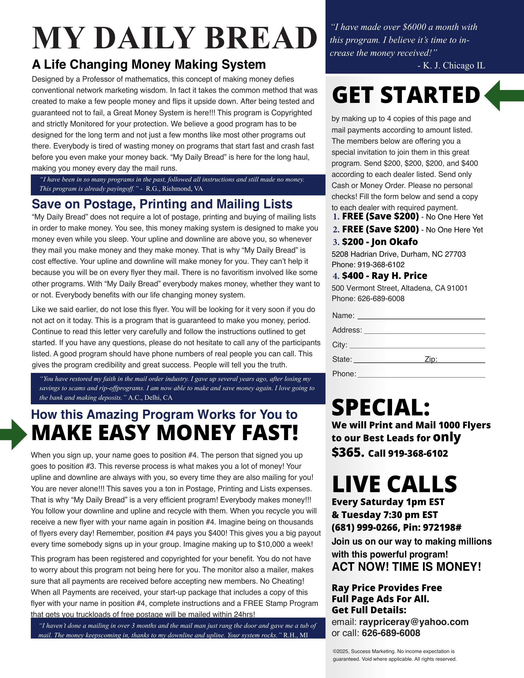 I receive a lot of cash from new members. One-time payment! Testimonial and proof in big mail! Rush $6 cash to: EDB-Good Program, 933 Tampines Palm Spring #07-375, Singapore 520933