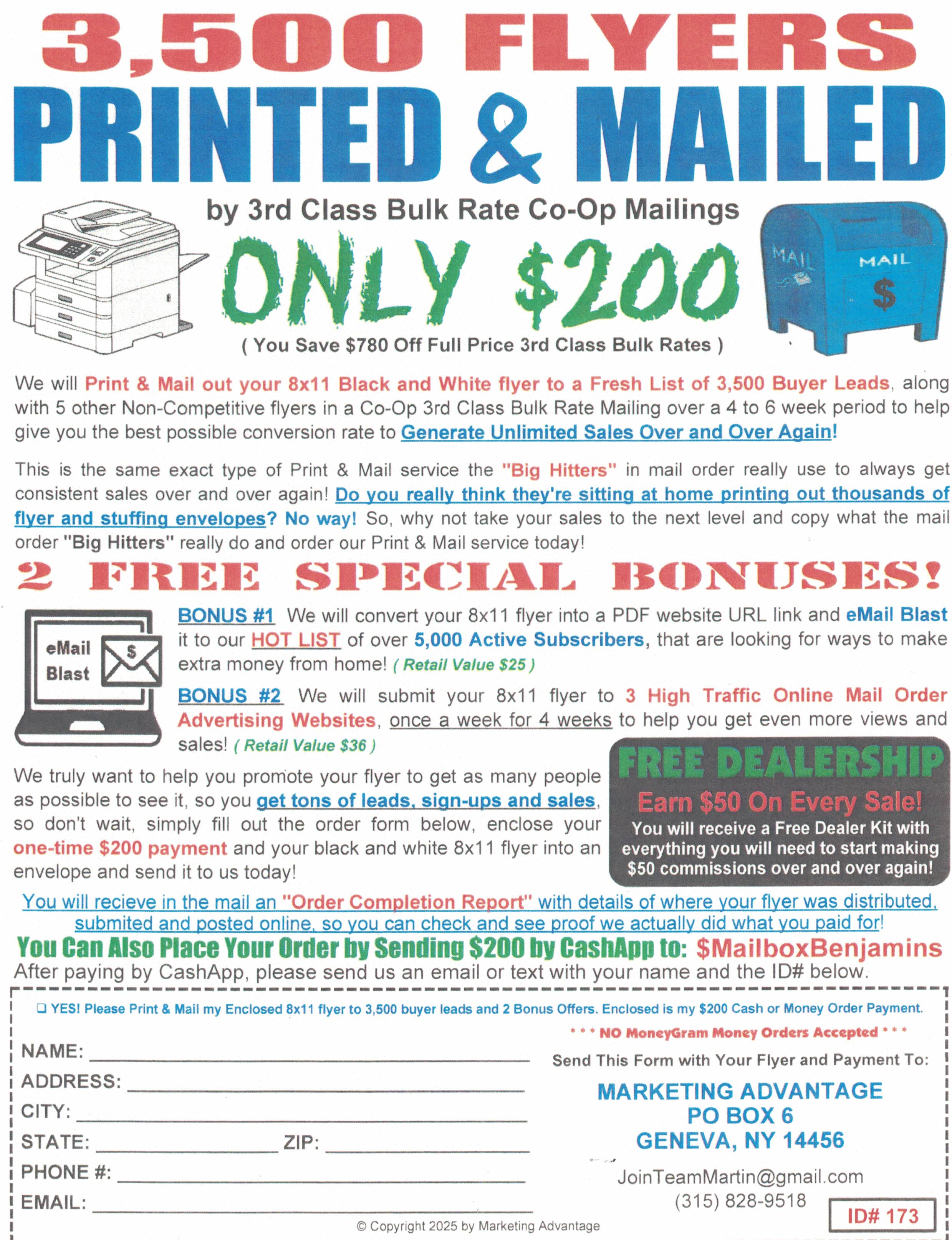 Double-sided 8 X 11 circular or ad sheet .................................................... $5 for 6 months