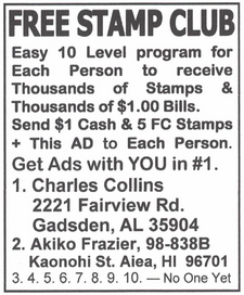 Why wait weeks or months to have your ads in circulation? Your 1" to 3" ads in 50 different ad sheets. 1,000,000 circulation only $60.00 + 6 F/C stamps to: Richard Lanier, 306 East 171 Street Apt. 2-F, Bronx NY 10457. Send cash or money order only.