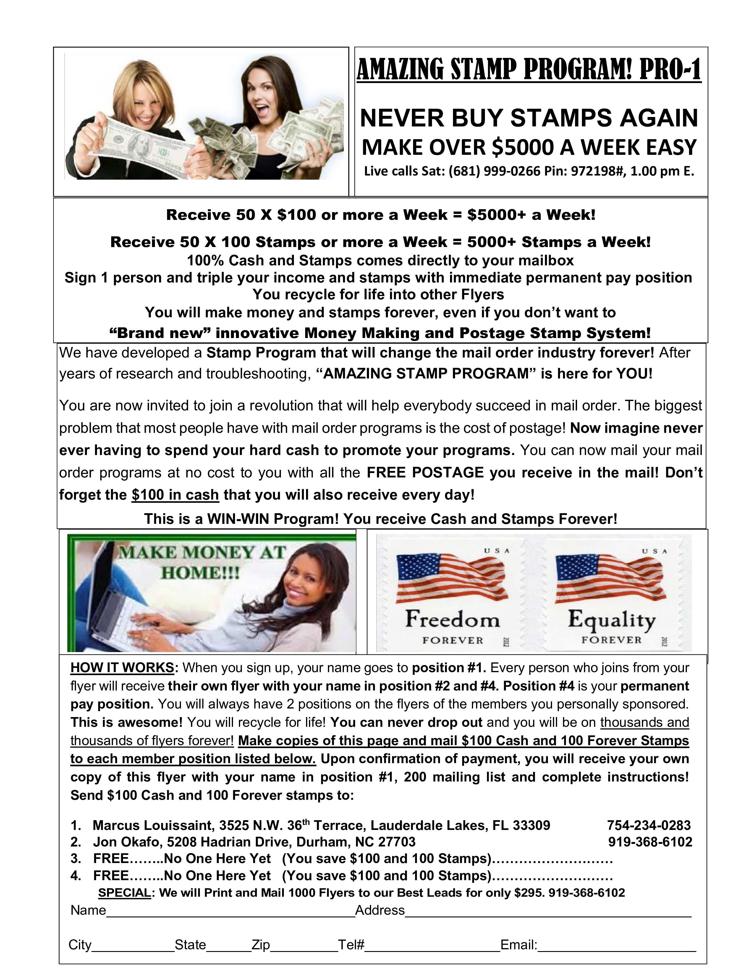 Never buy stamps again! We've got 20 hot money and stamp plans. Order them and start your cash and stamp flow. $5 + 5 stamps to: P&M, Box 3084, Memphis TN 38173