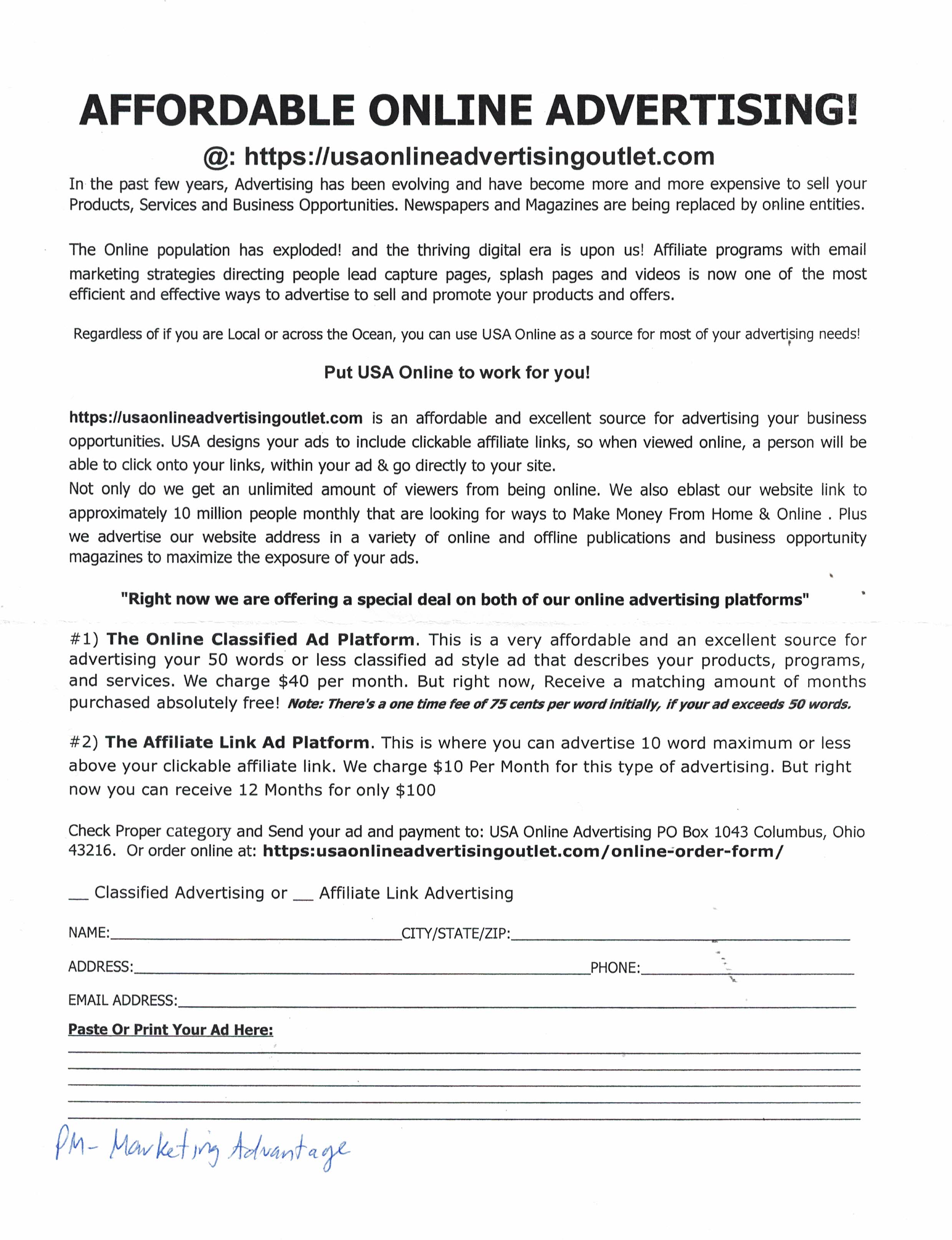 CLICK HERE FOR ADVERTISING ORDER FORM